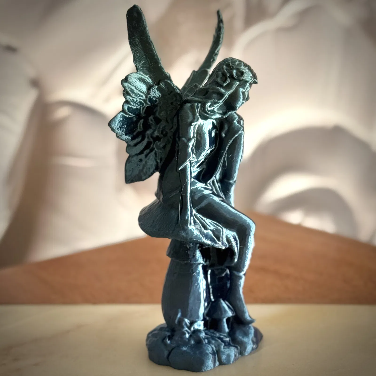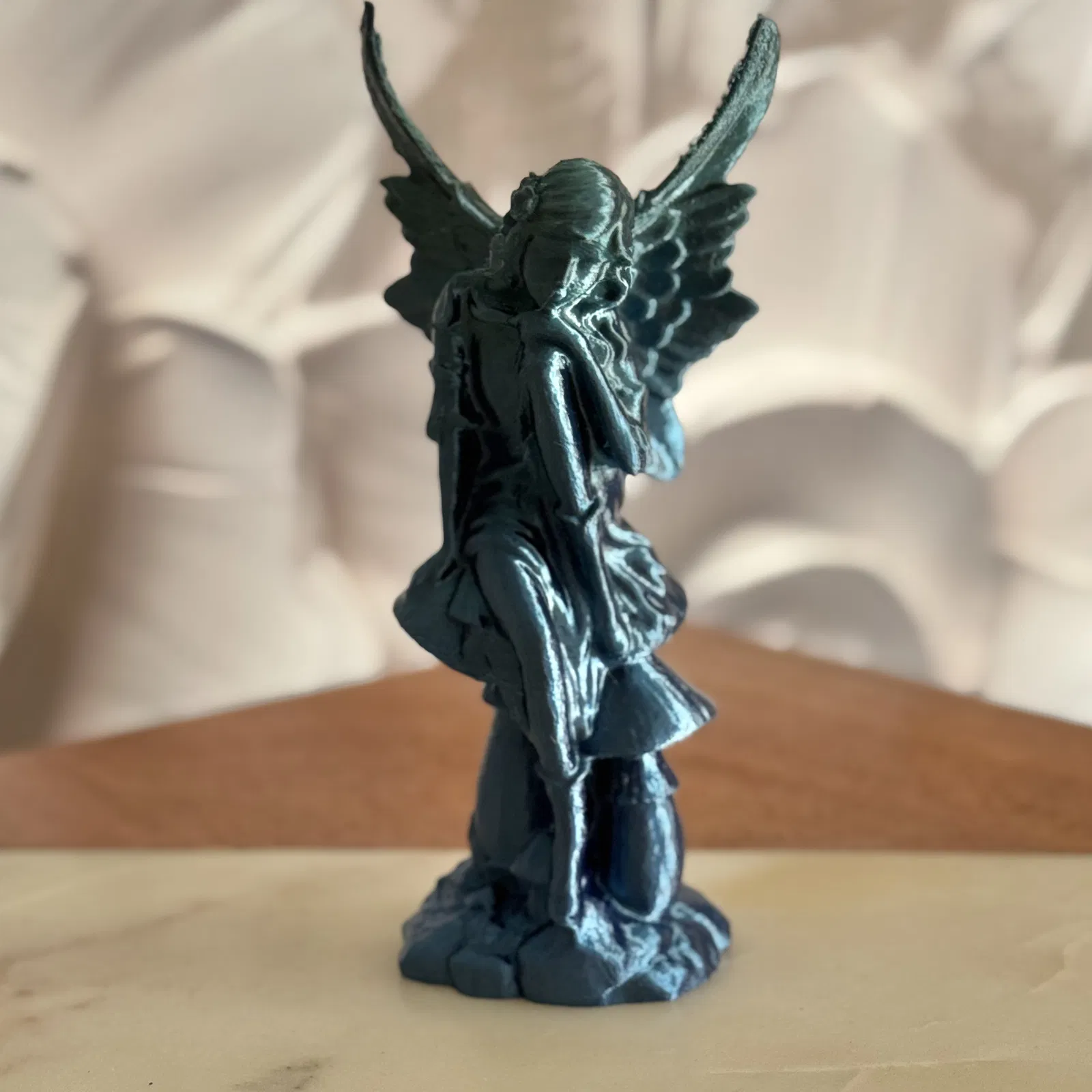 Mô hình tượng thiên thần bằng đá đầy tinh tế với đôi cánh chi tiết và dáng vẻ suy tư, toát lên vẻ đẹp dịu dàng và thanh thoát, được tạo ra từ công nghệ scan photogrammetry.