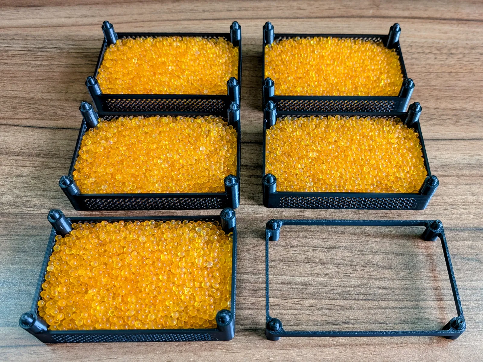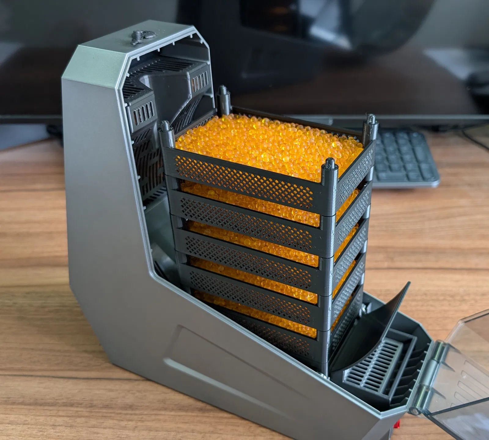 Bộ khay xếp chồng thông minh gồm tối đa 5 tầng giúp bạn sấy khô hạt hút ẩm cỡ 3-5mm một cách hiệu quả trong máy Creality Space Pi. Lưu ý quan trọng: hãy chọn loại nhựa chịu nhiệt cao như ASA, ABS hoặc PC để đảm bảo an toàn khi vận hành máy.