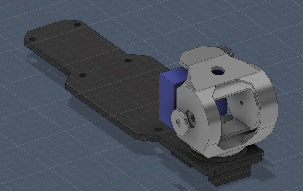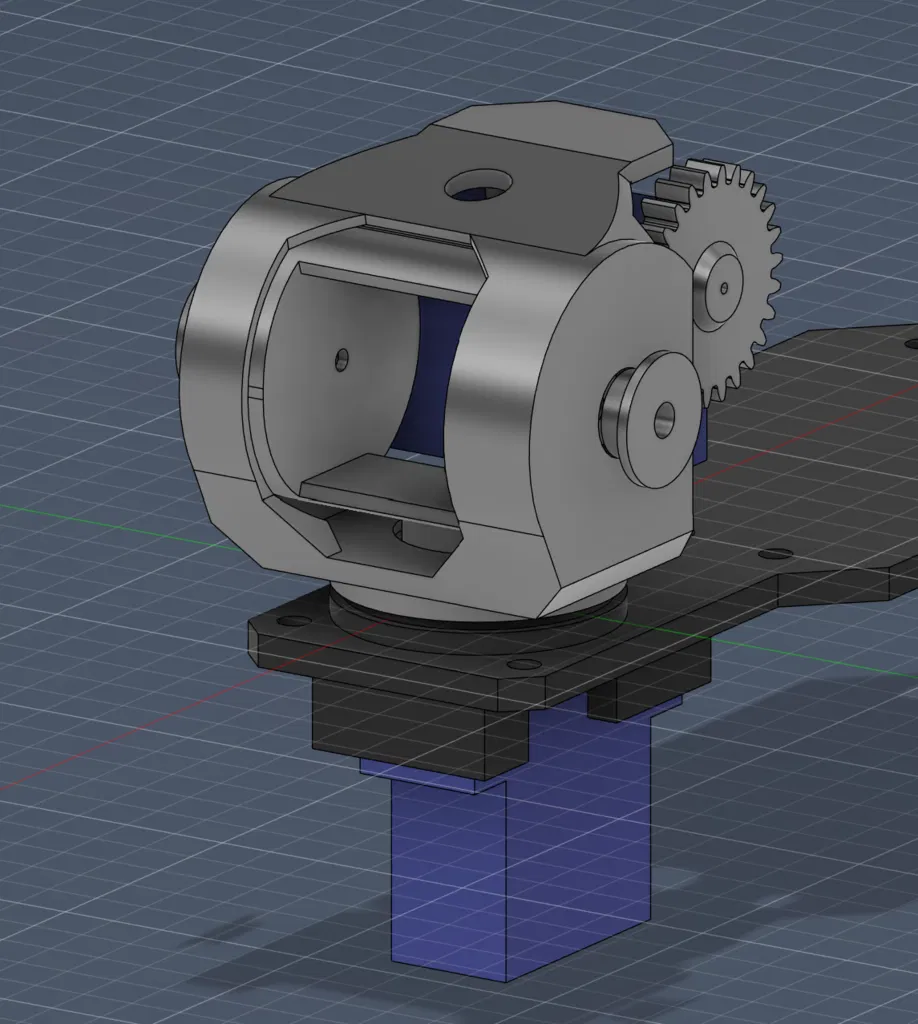 Phần "đế" (base) được thiết kế cho khung Apex 5", nhưng bạn hoàn toàn có thể tùy chỉnh để lắp cho hầu hết các loại drone DIY hoặc gắn trên đỉnh khung có sẵn. Trong các phiên bản tương lai, mình có thể sẽ làm thêm đế gắn đa năng hơn, tuy nhiên cần lưu ý là servo pan được đặt ngay trong không gian của camera nên nếu dùng tấm top plate tiêu chuẩn thì bạn sẽ cần khoét một lỗ.