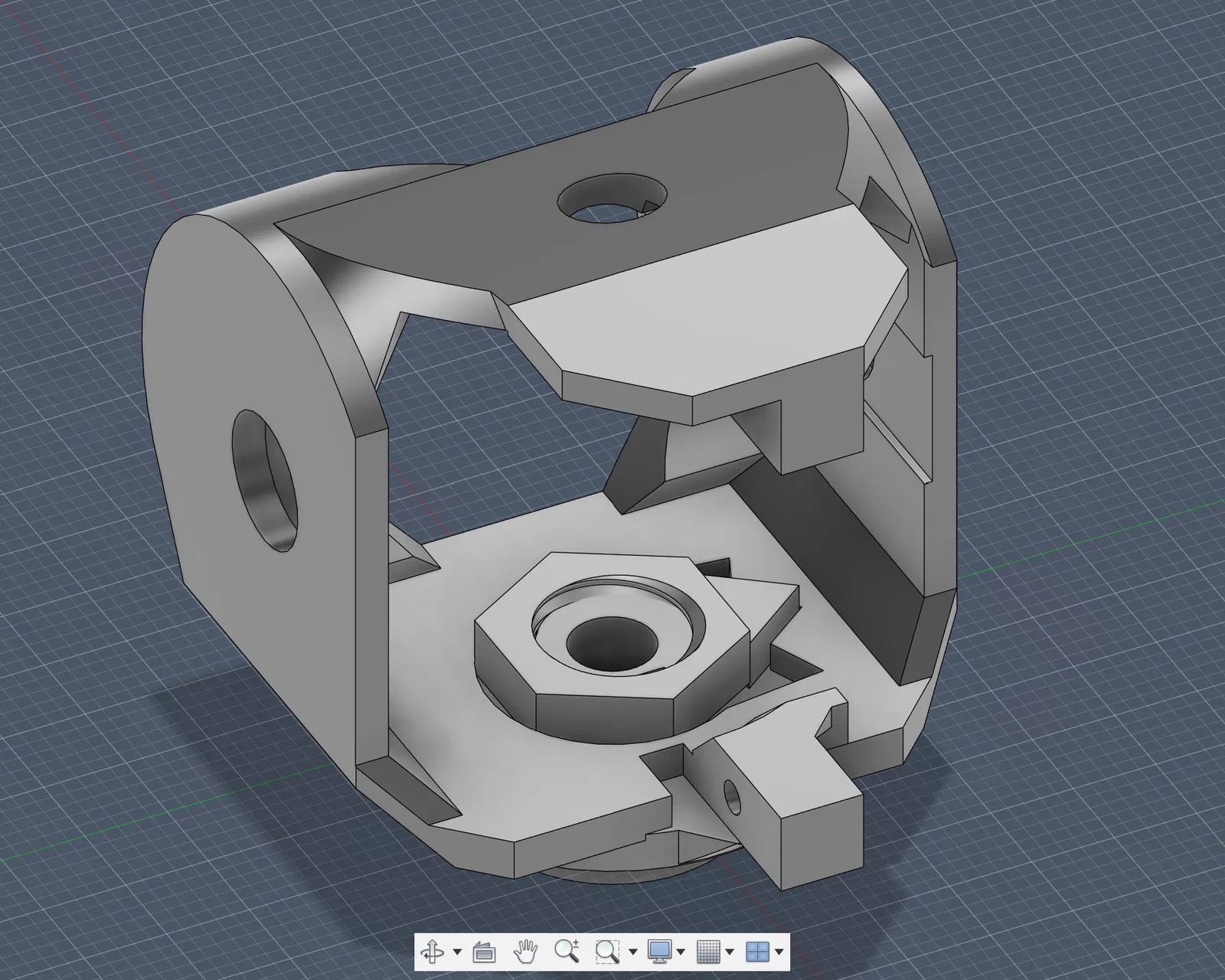 Đã cập nhật thêm chốt khóa để phần trục xoay và vỏ kết nối với nhau dễ dàng hơn. Thiết kế hướng tới sự nhẹ nhàng và bền bỉ, sử dụng vòng đệm chịu lực (thrust bushing) giúp camera di chuyển mượt mà mà vẫn đảm bảo độ chắc chắn. Gimbal này phù hợp với các loại camera FPV 19mm x 19mm (như HDZero Micro v2 hoặc tương tự), sử dụng loại micro-servo SG90 phổ thông dễ tìm trên Aliexpress (10 cái = £10) - xem hình ảnh. Bản thiết kế gốc dùng cho khung Apex 5" clone - lưu ý rằng các phiên bản khung Apex 5" clone này có thể mua trên Aliexpress với giá dưới £10, là một lựa chọn rất kinh tế.