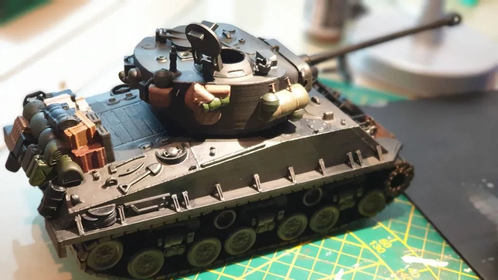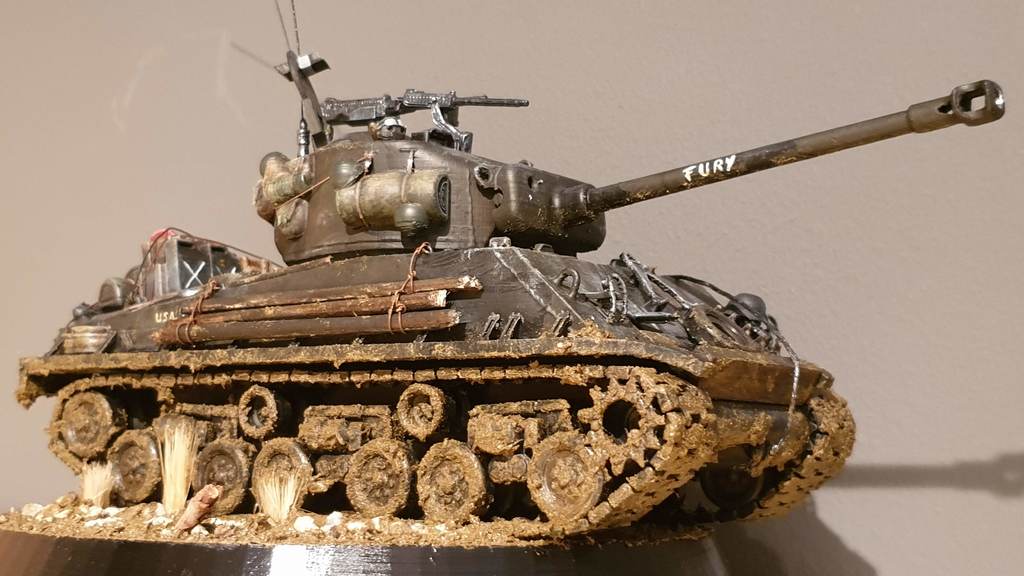Chào mọi người, đây là mô hình hoàn chỉnh của chiếc xe tăng "Fury" trong phim, với tỉ lệ ước tính khoảng 1:30. Trước hết, mình xin gửi lời cảm ơn đến "Jernej Primon" trên MyMiniFactory vì thiết kế "Articulated Tank from Fury" tuyệt vời https://www.myminifactory.com/object/3d-print-tank-in-fury-11858, và Vadim Vorobyov với bản remix phần tháp pháo: https://www.myminifactory.com/object/3d-print-modified-turret-with-articulated-hatches-for-sherman-fury-120587. Ngoài ra còn có "TigerAce1945" trên Thingiverse với dự án các chi tiết đồ đạc trên xe https://www.thingiverse.com/thing:2485741.