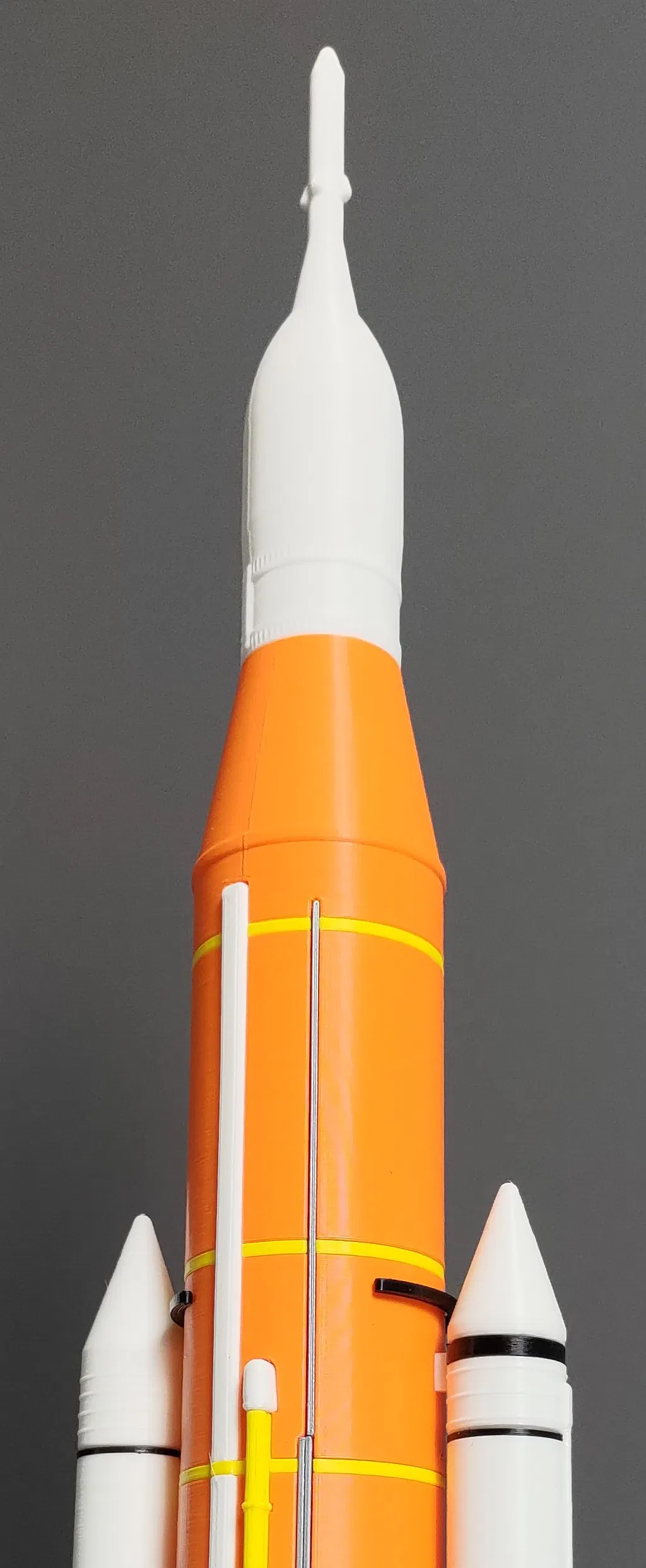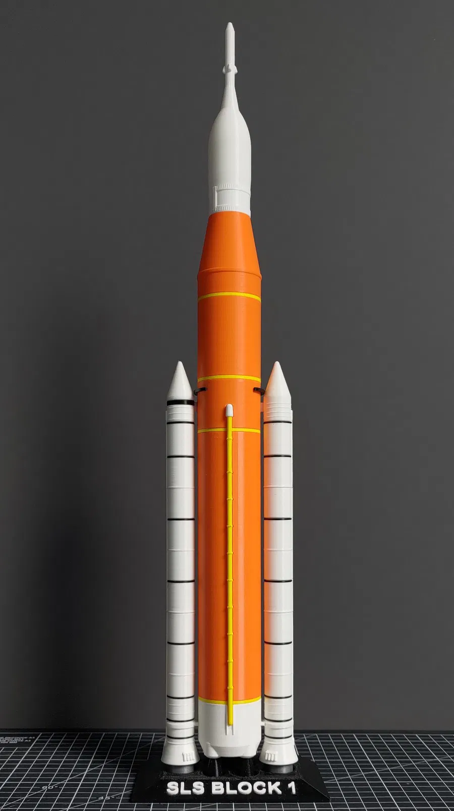 In mô hình tên lửa Space Launch System (SLS) với độ chi tiết cao ở tỷ lệ 1:200. Thiết kế bao gồm nhiều mảnh tách rời, giúp việc in ấn và lắp ráp trở nên dễ dàng và thuận tiện cho người chơi.