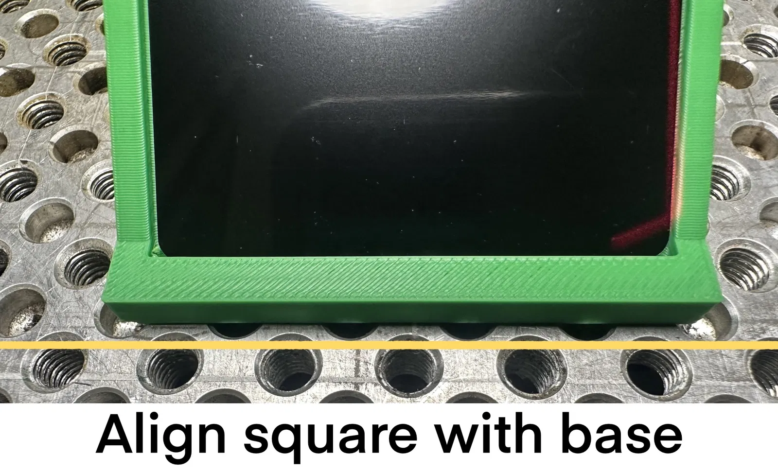 Nhớ đặt dốc sao cho vuông góc với các lỗ trên tấm đế của máy laser. Xem ảnh minh họa.