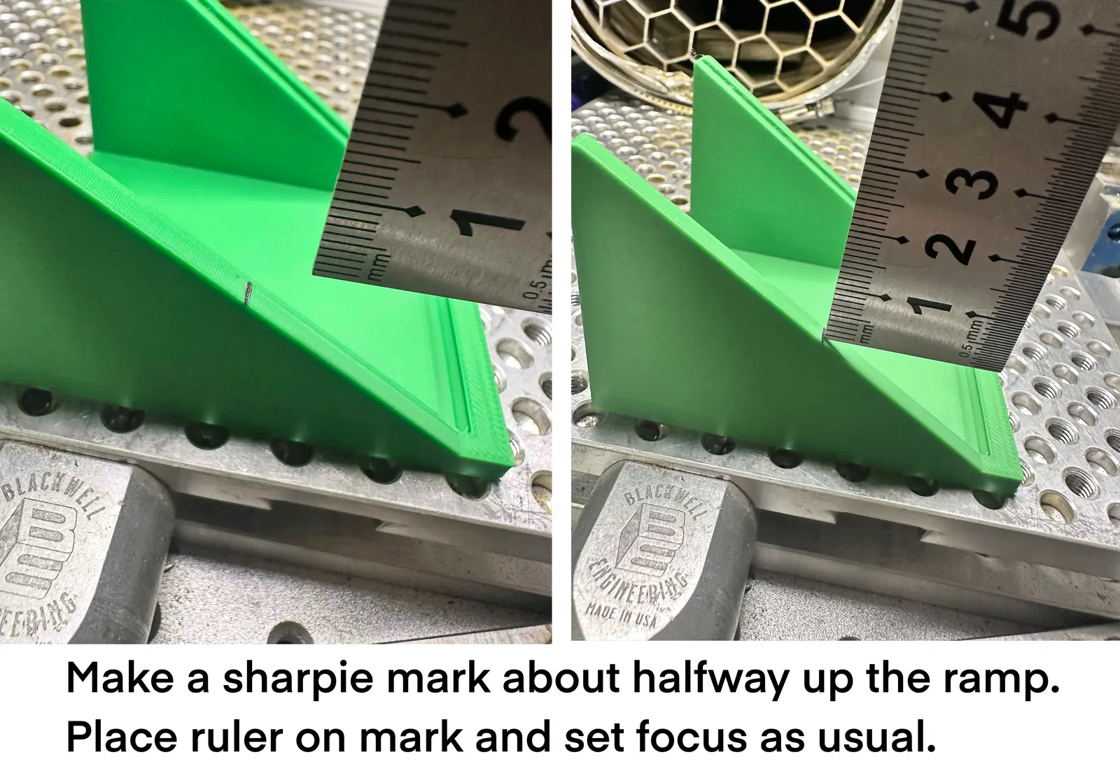 Dùng bút Sharpie đánh dấu khoảng một nửa chiều cao của dốc, sau đó dùng dấu đó để chỉnh tiêu điểm bằng thước như bình thường. Xem ảnh minh họa.