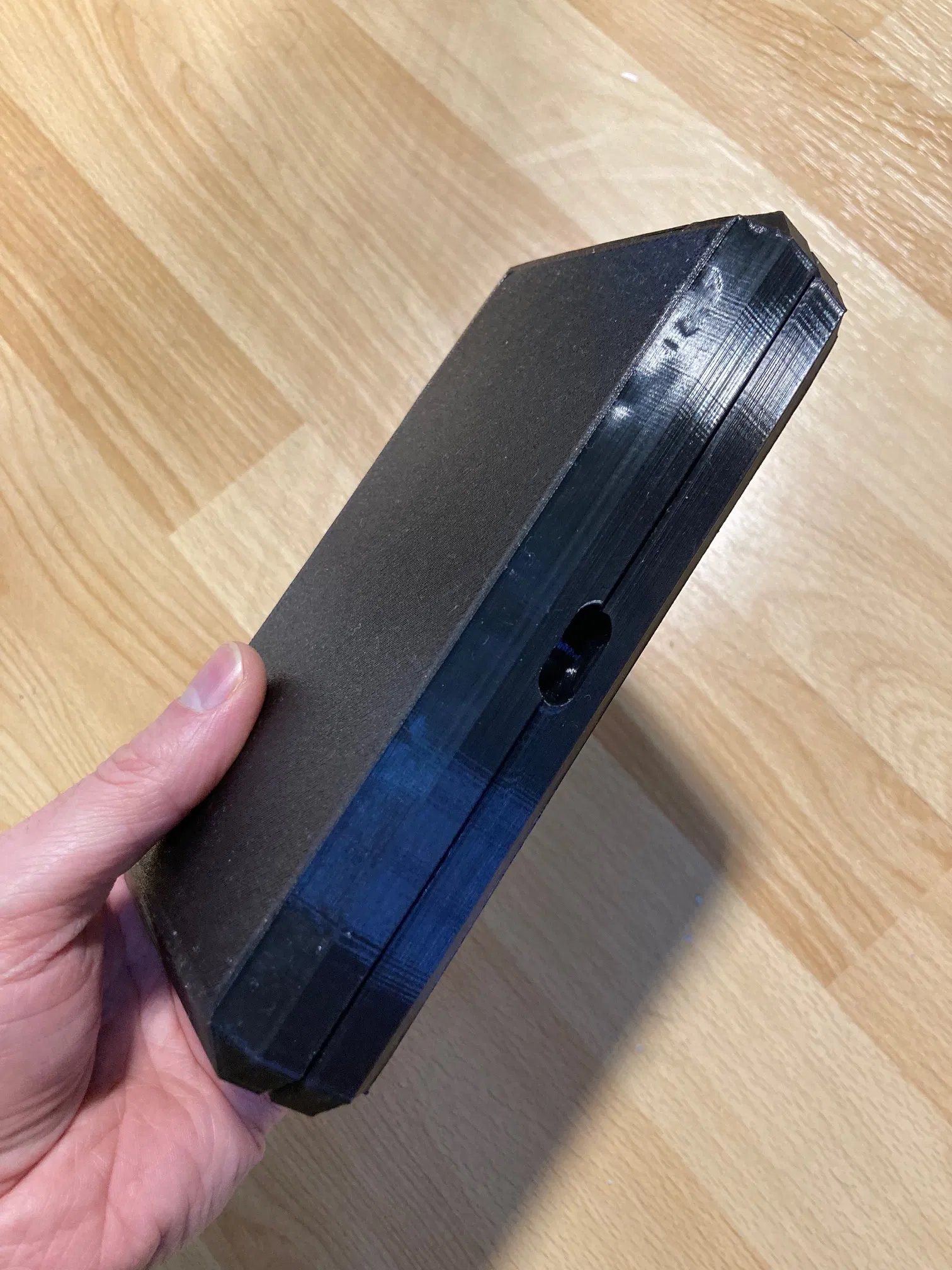 Đây là hai phiên bản của hộp đựng cứng (hard case) dành cho máy chơi game R36H. Bạn có thể dán thêm nam châm kích thước 8x3 mm vào bên trong. Bạn cũng có thể tùy chỉnh file Blender gốc để sản phẩm vừa vặn hơn hoặc thay đổi thiết kế theo ý muốn. Phần bản lề có thể cố định bằng một đoạn nhựa in 3D (filament) cỡ 1.75 mm. Một lưu ý nhỏ là phần nắp trên có vài lỗi nhỏ do các thao tác boolean quá mức, nhưng bạn có thể dễ dàng sửa lỗi bằng công cụ Windows 3D Builder. Mình đã in các bản này ở tư thế nằm phẳng trên máy Neptune Max 3 với phần viền (brim) 3 mm. Mình chọn chế độ 'Exclusive' trong mục Slicing Tolerance để đạt được độ khít tốt nhất.