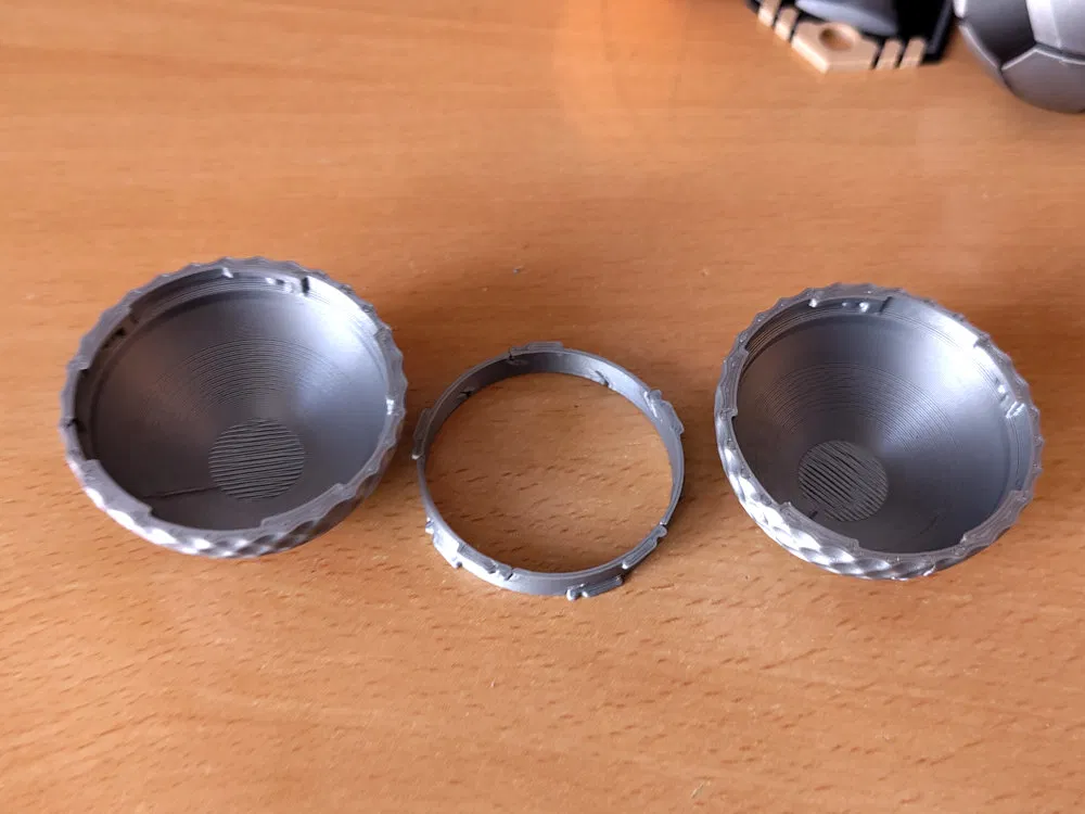 Mình muốn làm một chiếc hộp hình cầu và đây là thành quả :) Hộp gồm hai nửa giống hệt nhau, được giữ chặt bằng một vòng khóa bayonet hai mặt (twist&click). Và tất nhiên, mình nghĩ ngay đến việc tạo hình quả bóng thể thao, thế là mình đã làm thêm vài mẫu nữa… Cơ chế khóa bayonet kép khi đóng nghe rất đã tai và nghịch cũng khá vui tay nữa :)