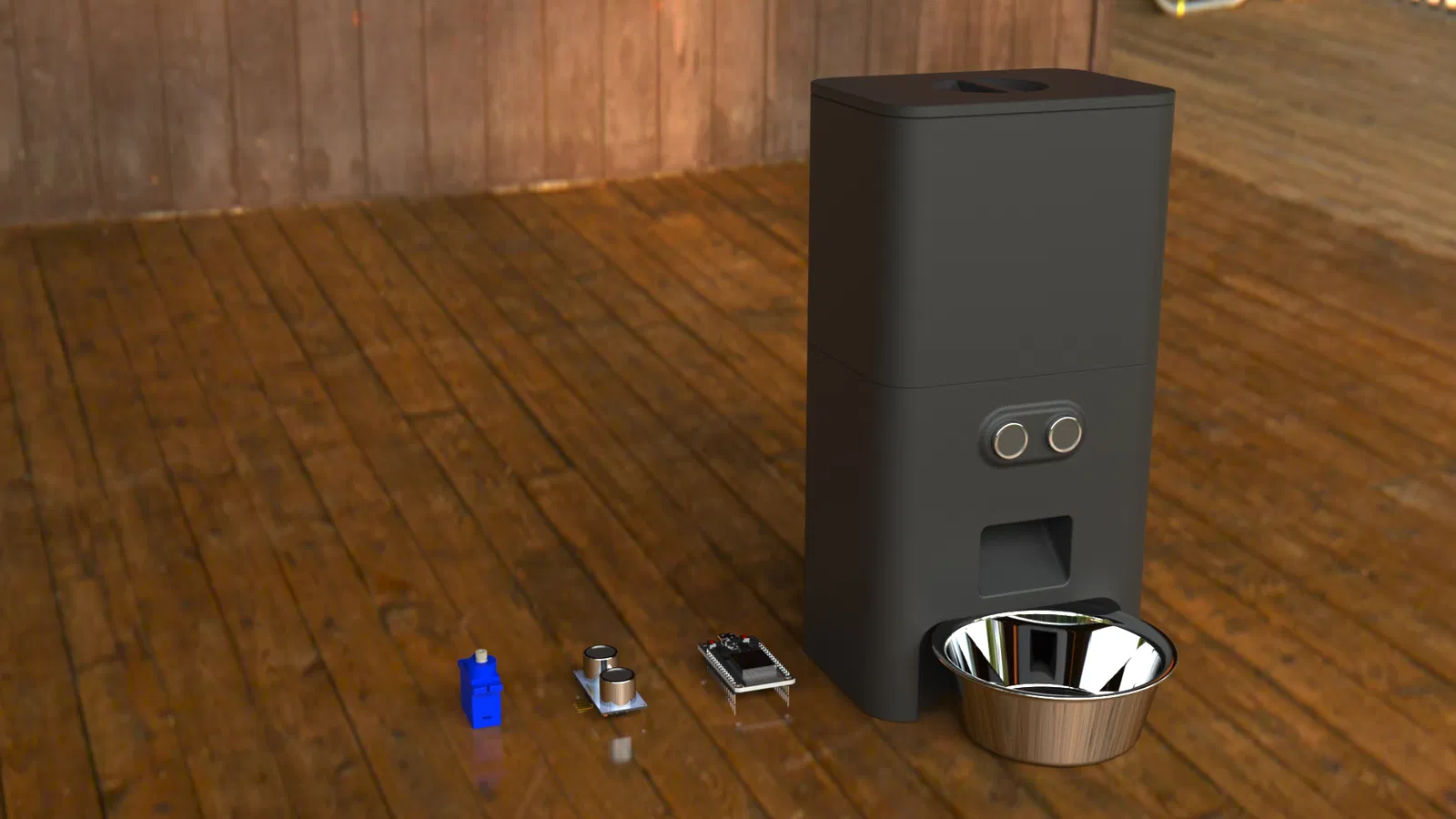 Máy cho ăn tự động The CHONK feeder sử dụng Arduino ESP32 và cảm biến siêu âm để nhả thức ăn khi thú cưng đến gần. Bản thiết kế 3D tối ưu, dễ lắp ráp.