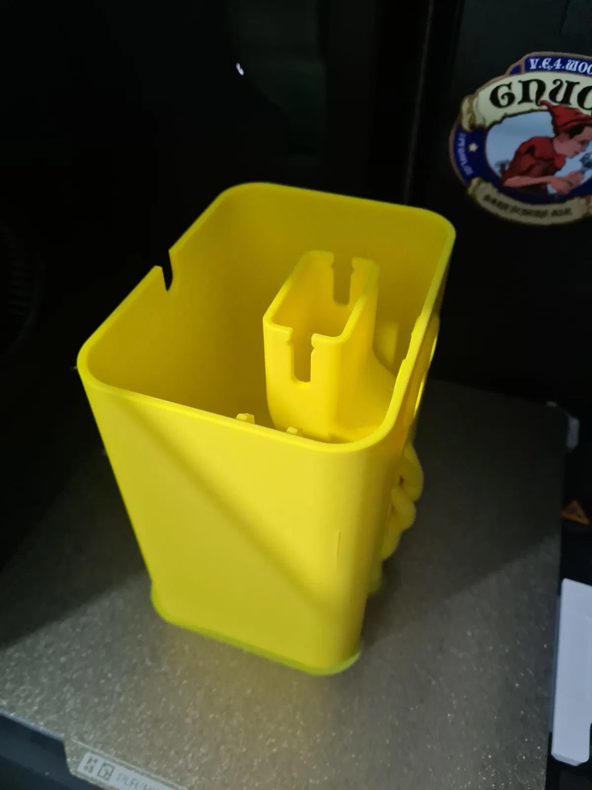 - Một thay đổi nhỏ khác là phần Vỏ cơ chế (Mechanism enclosure), mình đã mở rộng lỗ lắp Trục một chút; bây giờ chỉ cần ấn nhẹ là vào khớp.
