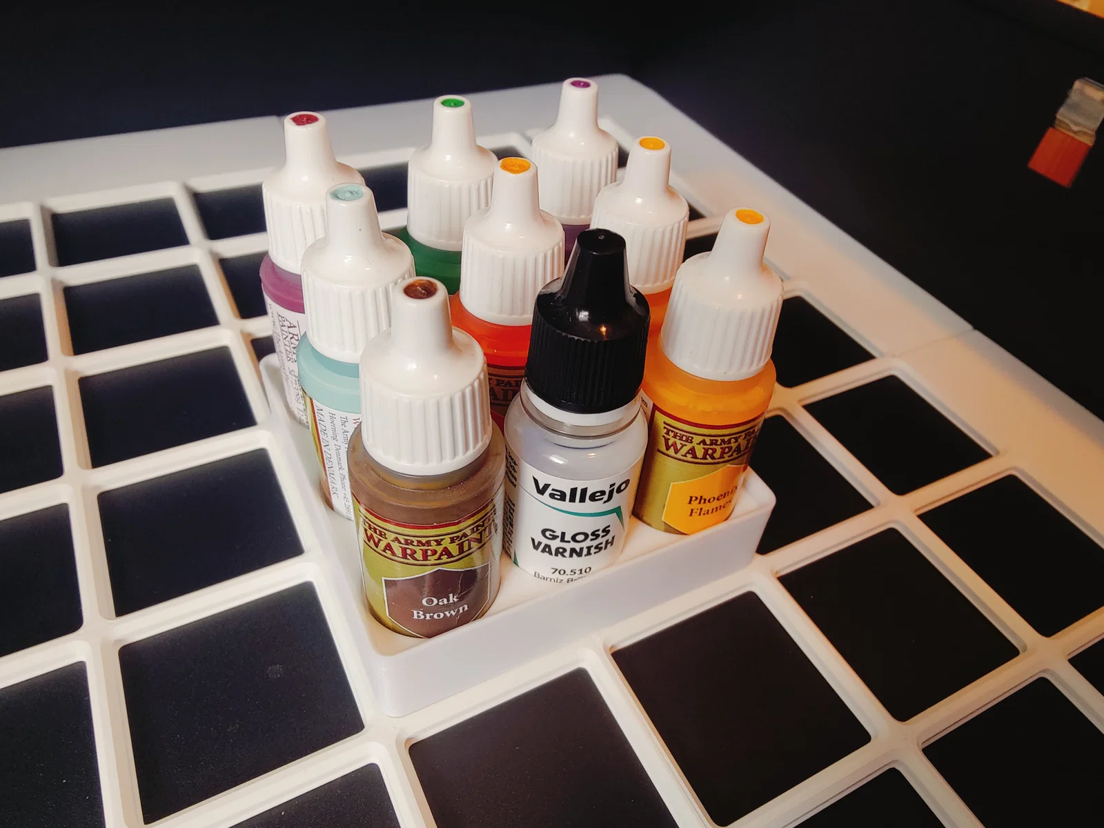 • Mẹo nhỏ: Bạn có thể in khay với các màu sắc khác nhau để phân loại nhóm màu vẽ (ví dụ: khay đỏ cho màu base, khay xanh cho màu highlight) giúp tăng tốc độ làm việc.