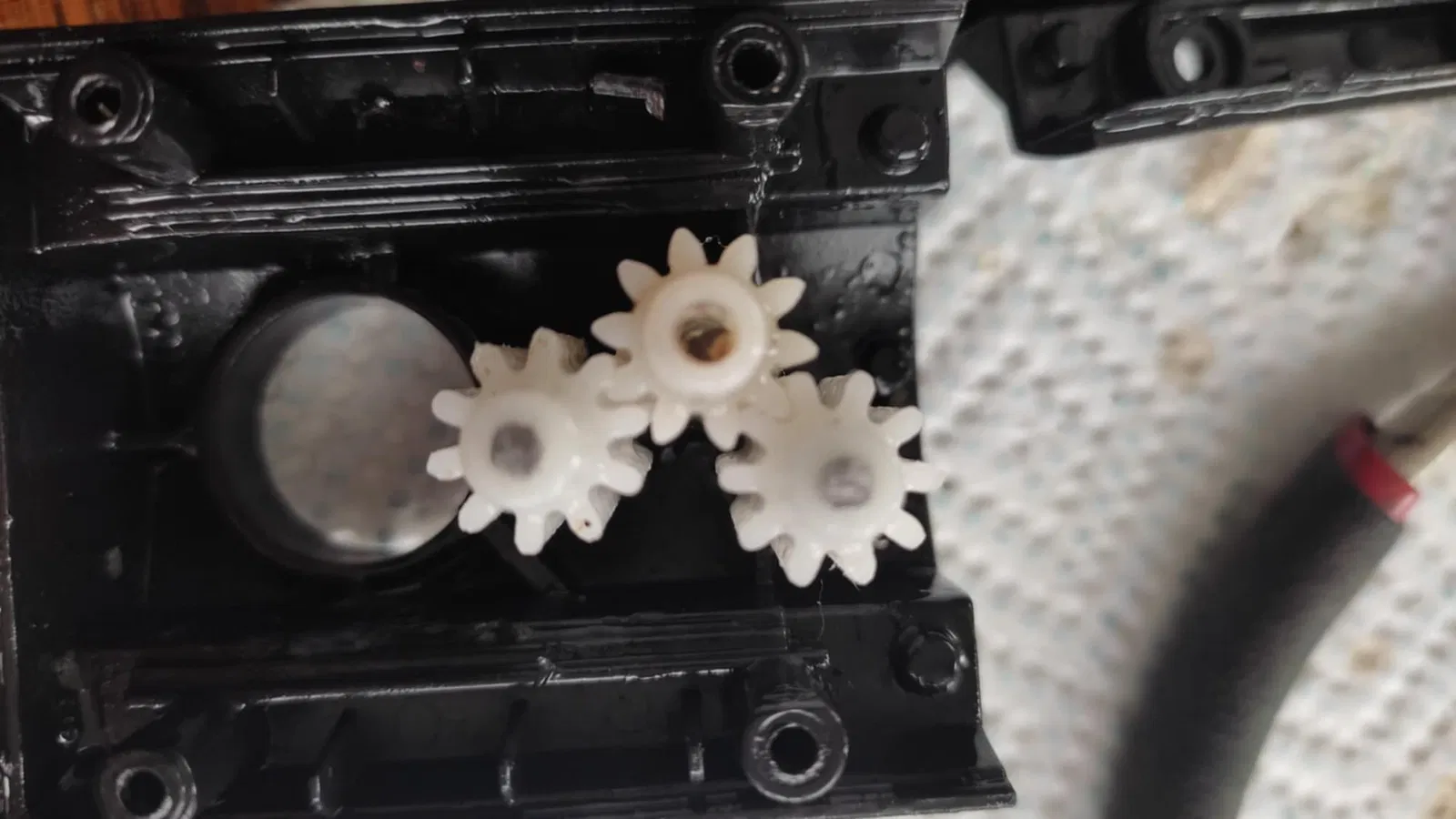 Có một cái chốt (pin) bên trong bánh răng lớn. Cái chốt này rất cần thiết vì nó dùng để nhấn công tắc.