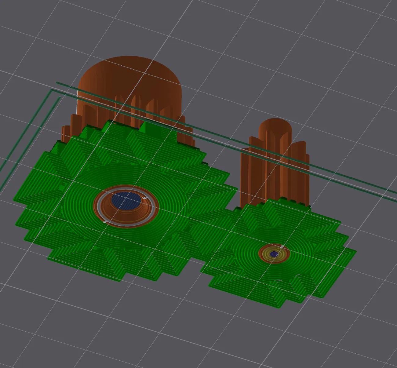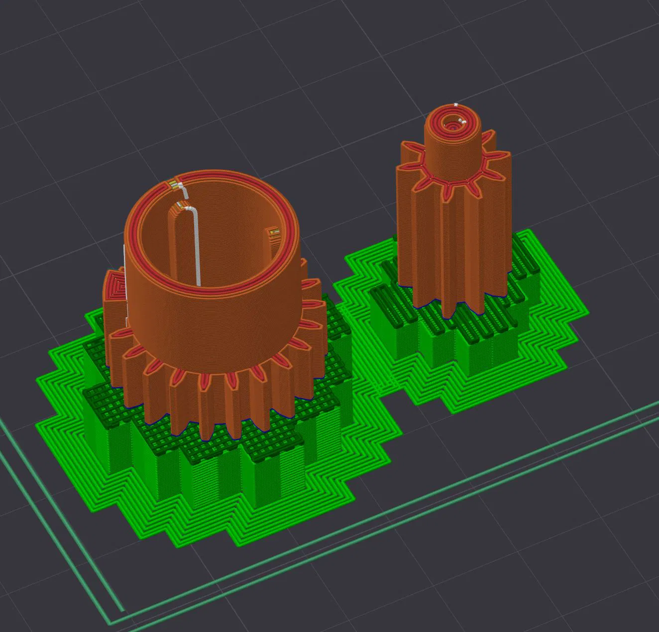 Chất liệu PETG và CF PLA bị gãy khá nhanh. Mình chưa thử với ABS. Tuy nhiên, sợi Nylon cho kết quả rất tốt. Phần hỗ trợ (support) như hình mình đính kèm là cấu hình đã hoạt động ổn định với mình.