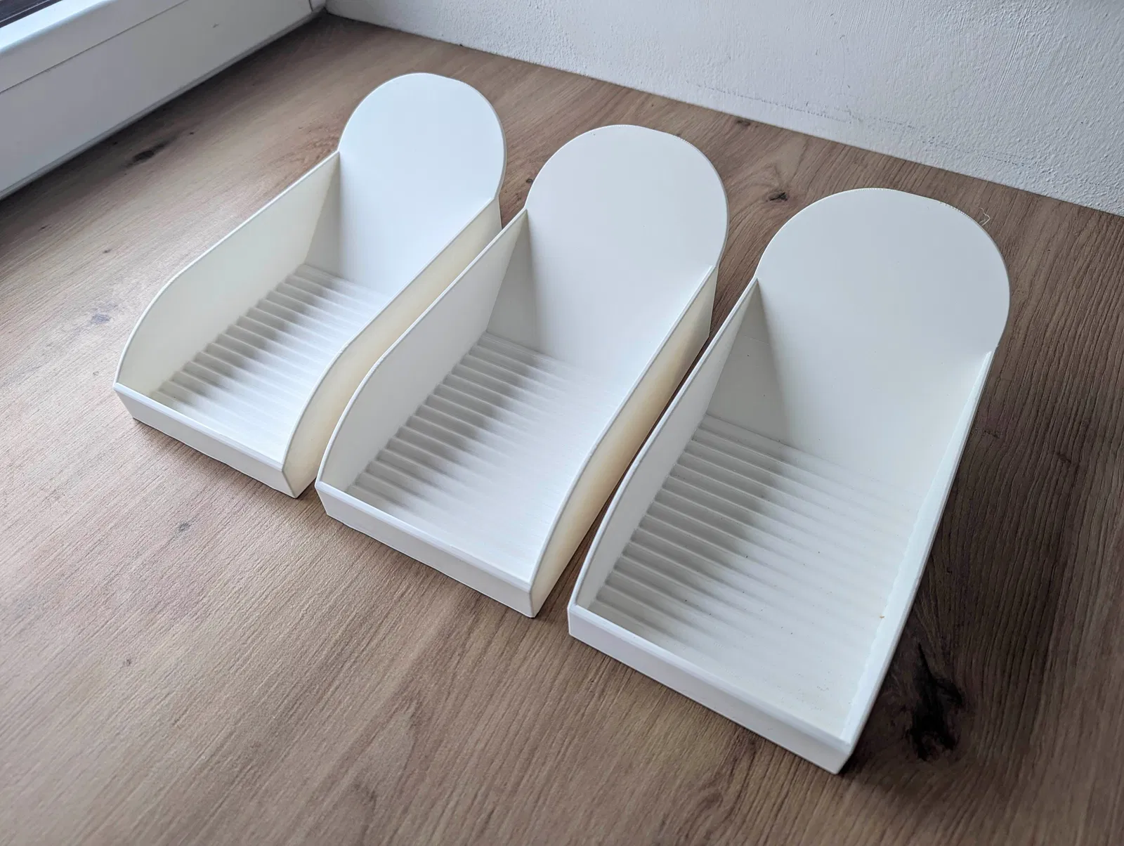 Cái khay đựng gia vị in 3D này được thiết kế để đặt vừa vặn trong các ngăn kéo nhà bếp, giúp giữ cho các gói gia vị luôn đứng thẳng và dễ dàng lấy ra sử dụng. Thiết kế nghiêng cho phép lưu trữ hiệu quả ngay cả trong những ngăn kéo có chiều cao thấp (đã thử nghiệm thành công trong ngăn kéo cao 10 cm). Phần đáy có gân giúp giữ các gói gia vị cố định, ngăn chúng bị trượt. Bạn có thể in nhiều khay để tùy chỉnh không gian lưu trữ theo nhu cầu của mình. Rất lý tưởng để giữ cho căn bếp của bạn luôn ngăn nắp và gọn gàng!