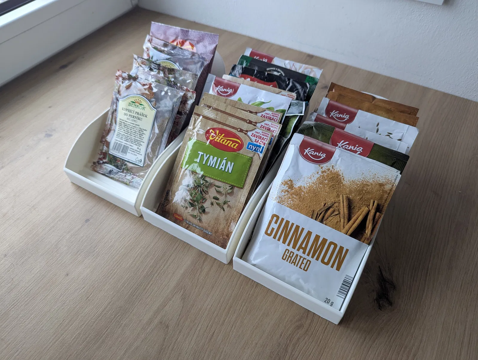 Khay đựng gia vị in 3D với thiết kế nghiêng, giúp bạn sắp xếp các gói gia vị gọn gàng trong ngăn kéo nông (chỉ từ 10 cm). Sản phẩm có các gân chống trượt, dễ dàng in và tùy chỉnh theo nhu cầu sử dụng của mỗi gia đình.