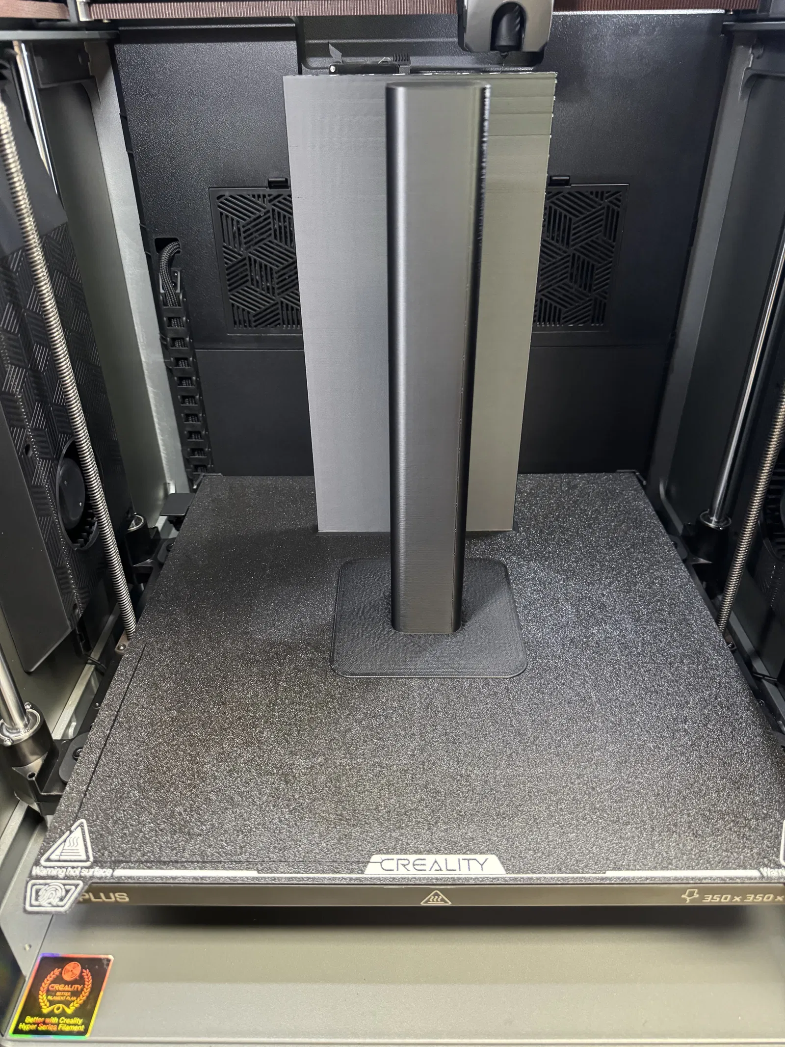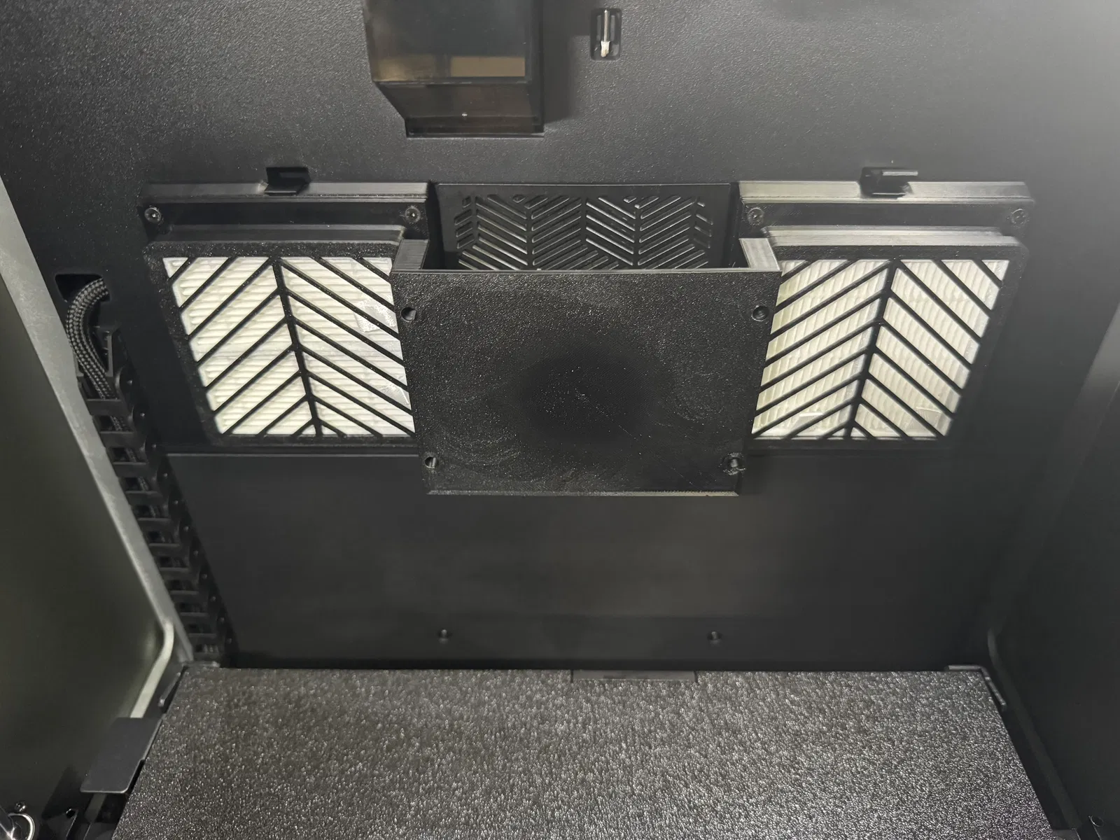Mình nhận thấy rằng đối với các bản in cao (trên 120mm) trong buồng in có gia nhiệt, chi tiết in có thể bị ảnh hưởng bởi việc bộ sưởi buồng in liên tục bật tắt… Mình đã chỉnh sửa lại phần nắp đậy lọc HEPA (remix) để thêm vào các vị trí gắn ốc cấy nhiệt (heated inserts) và một tấm chắn hình chữ nhật đơn giản giúp hướng luồng nhiệt lên trên và xuống dưới thay vì thổi trực tiếp vào chi tiết in. Mình có đính kèm hai hình ảnh thử nghiệm để các bạn thấy rõ hiện tượng ảnh hưởng lên chi tiết khi đặt ở phía sau, qua đó dễ hình dung hơn.