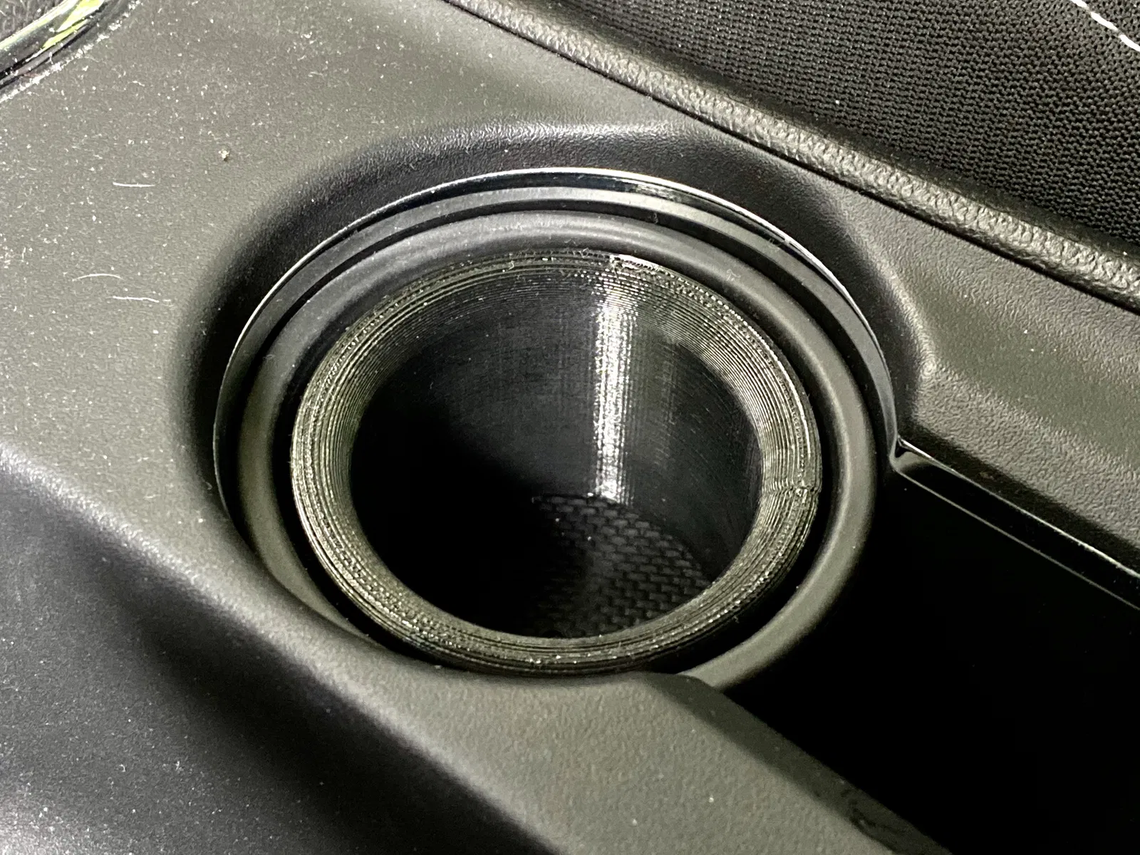 Đây là vòng đệm giúp khay đựng cốc trên xe Kia Ceed vừa khít với lon Red Bull. Thiết kế vát miệng giúp dễ dàng đặt lon vào khi lái xe. Khuyên dùng nhựa PETG để chịu nhiệt tốt trong xe hơi.