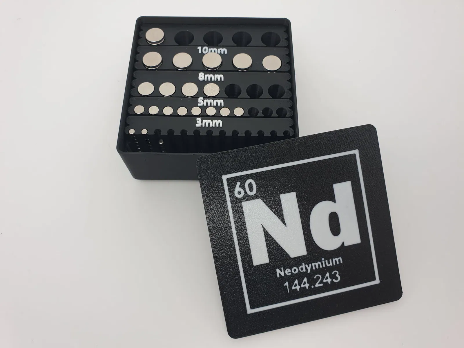 Bạn đang tìm cách sắp xếp các loại nam châm Neodymium nhỏ bé một cách khoa học? Đừng bỏ qua giải pháp hộp đựng nam châm theo hệ thống Gridfinity Modular cực kỳ tiện lợi này. Được cải tiến với nắp đậy chắc chắn in hình ký hiệu hóa học Neodymium, sản phẩm này giúp bạn quản lý các viên nam châm từ 3mm đến 10mm một cách ngăn nắp. Thiết kế thông minh không chỉ ngăn chặn tình trạng nam châm rơi vãi hay hút dính lung tung mà còn tạo điểm nhấn chuyên nghiệp cho bàn làm việc. Đây là phụ kiện không thể thiếu cho các tín đồ yêu thích 3D printing, giúp tối ưu hóa không gian làm việc và bảo vệ linh kiện của bạn luôn sạch sẽ, dễ dàng lấy ra sử dụng ngay khi cần.