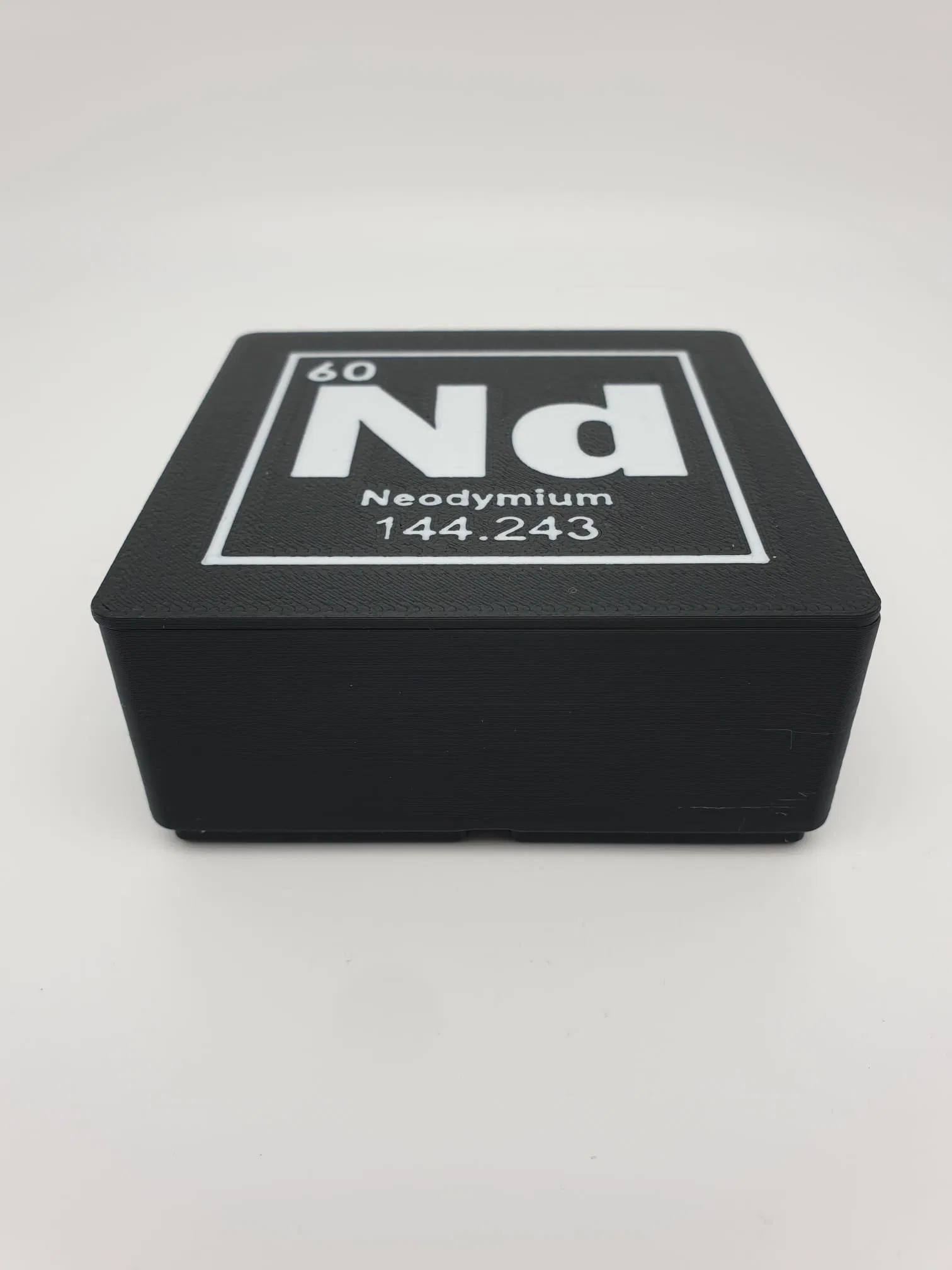 Điểm đặc biệt của phiên bản này chính là việc bổ sung thêm phần nắp đậy chắc chắn, giúp bảo vệ nam châm khỏi bụi bẩn và tránh tình trạng rơi rớt khi bạn di chuyển hộp. Phần nắp được thiết kế ấn tượng với biểu tượng bảng tuần hoàn hóa học của Neodymium (Nd), vừa mang tính thẩm mỹ cao lại vừa giúp bạn dễ dàng nhận biết bên trong đang chứa loại linh kiện gì. Đây là một nâng cấp đáng giá cho bất kỳ ai đang sử dụng hệ sinh thái Gridfinity, giúp bàn làm việc của bạn trông gọn gàng và chuyên nghiệp hơn hẳn.
