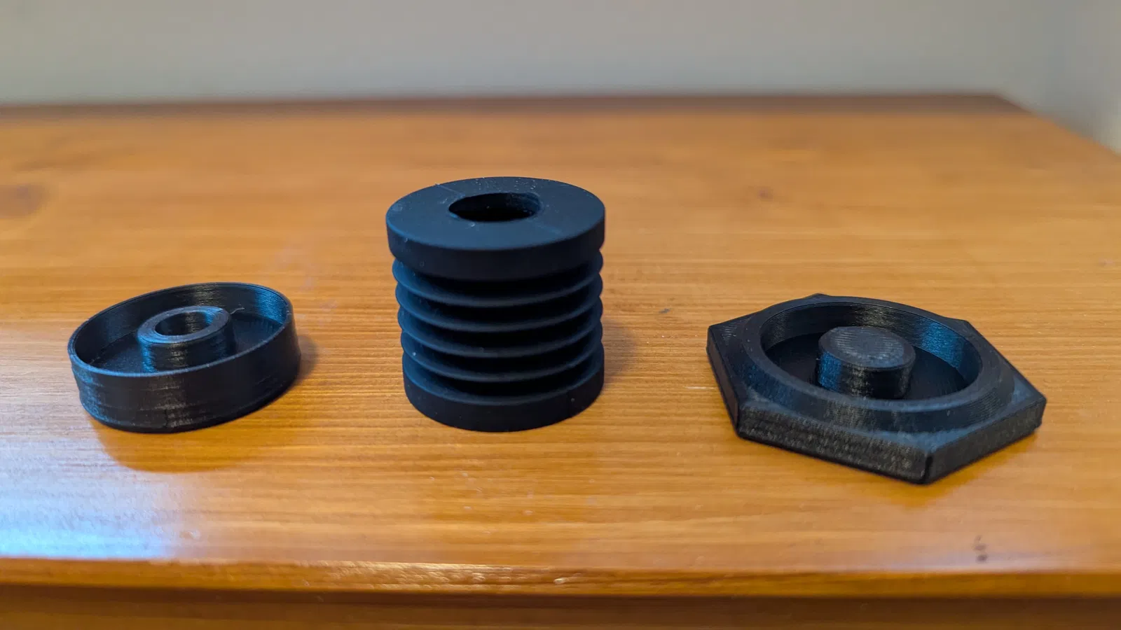 Bản cải tiến cho chân đế Flashforge 5m với thiết kế khớp nhấn (press fit) dễ lắp ráp hơn. Chân đế này thay thế hoàn toàn phần chân zin của máy, giúp giảm rung lắc hiệu quả và giữ cố định chắc chắn khi cần di chuyển máy in.