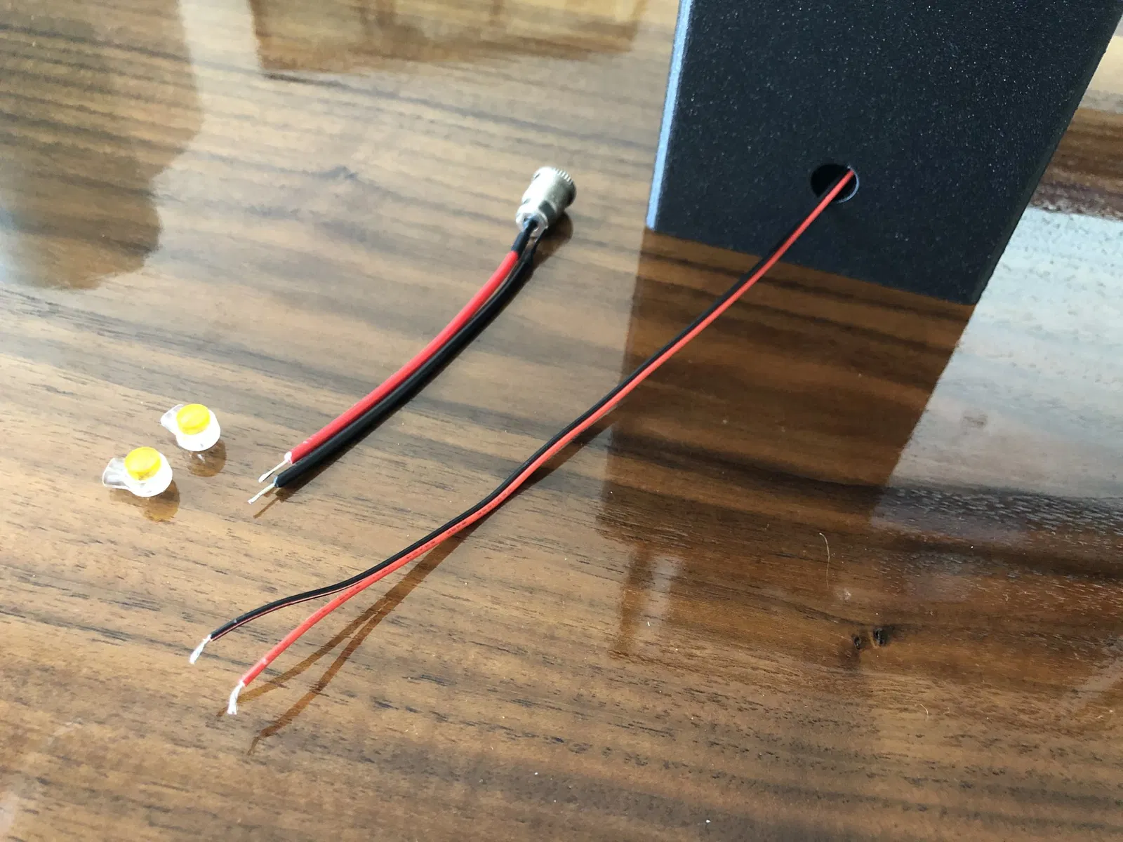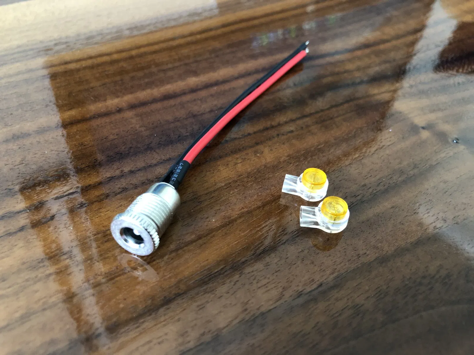 - Gỡ một lượng nhỏ vỏ dây từ các dây đỏ và đen trên quạt và bộ chuyển đổi nguồn DC có ren.