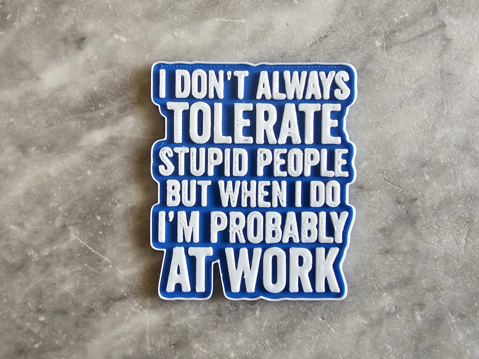 Bạn đang tìm một món đồ trang trí độc đáo để làm điểm nhấn cho bàn làm việc của mình tại văn phòng? Mẫu 3D "Tolerant at work sign" này chính là lựa chọn hoàn hảo dành cho bạn. Đây không chỉ là một món phụ kiện văn phòng bình thường, mà còn là cách hài hước và tinh tế để bạn thể hiện cá tính riêng, tạo không khí vui vẻ cho những đồng nghiệp xung quanh. Với dòng thông điệp đầy tính châm biếm, chắc chắn chiếc bảng hiệu này sẽ trở thành tâm điểm của những cuộc trò chuyện thú vị ngay tại nơi làm việc.
