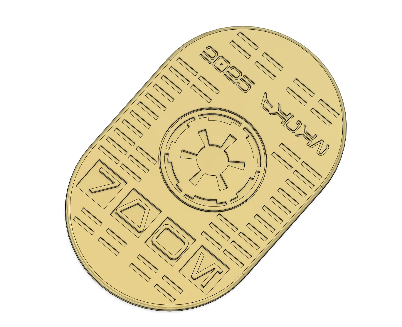Nếu bạn là một tín đồ của vũ trụ Star Wars và đang tìm kiếm một món phụ kiện trang trí mang đậm dấu ấn riêng, thì mẫu Imperial Credit (tiền xu của Đế chế) này chắc chắn sẽ làm bạn hài lòng. Lấy cảm hứng từ những đồng tiền Koban truyền thống của Nhật Bản kết hợp với biểu tượng đặc trưng từ Star Wars, mẫu in 3D này mang đến một vẻ ngoài vừa cổ điển vừa hiện đại. Đây là sản phẩm hoàn hảo để làm quà tặng, vật phẩm trưng bày trong bộ sưu tập hoặc làm phụ kiện hỗ trợ cho các buổi chơi game bài Sabacc cùng bạn bè.