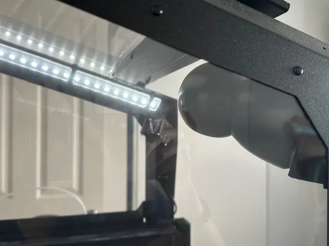 Ngàm gắn cho camera Buddy3D với góc nghiêng đã được điều chỉnh, giúp bạn quay được toàn bộ bàn in trên thùng máy XL Enclosure mà vẫn đảm bảo không gian trống phía trên.