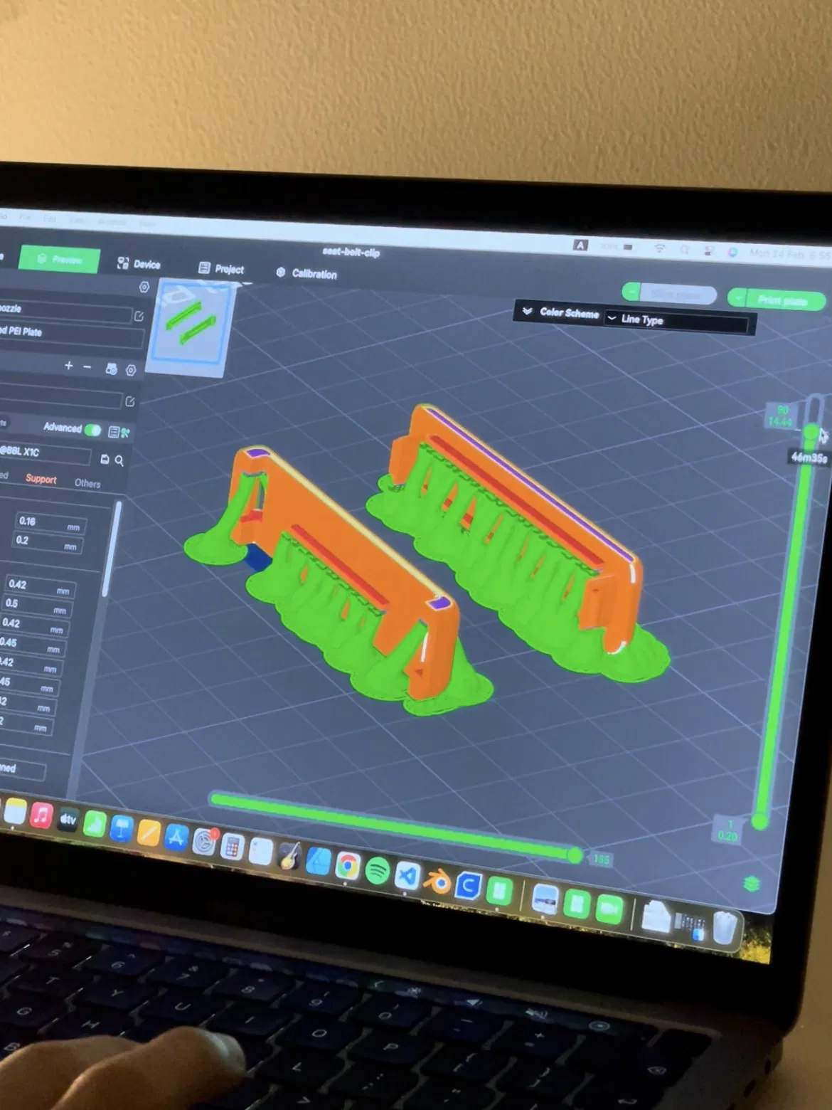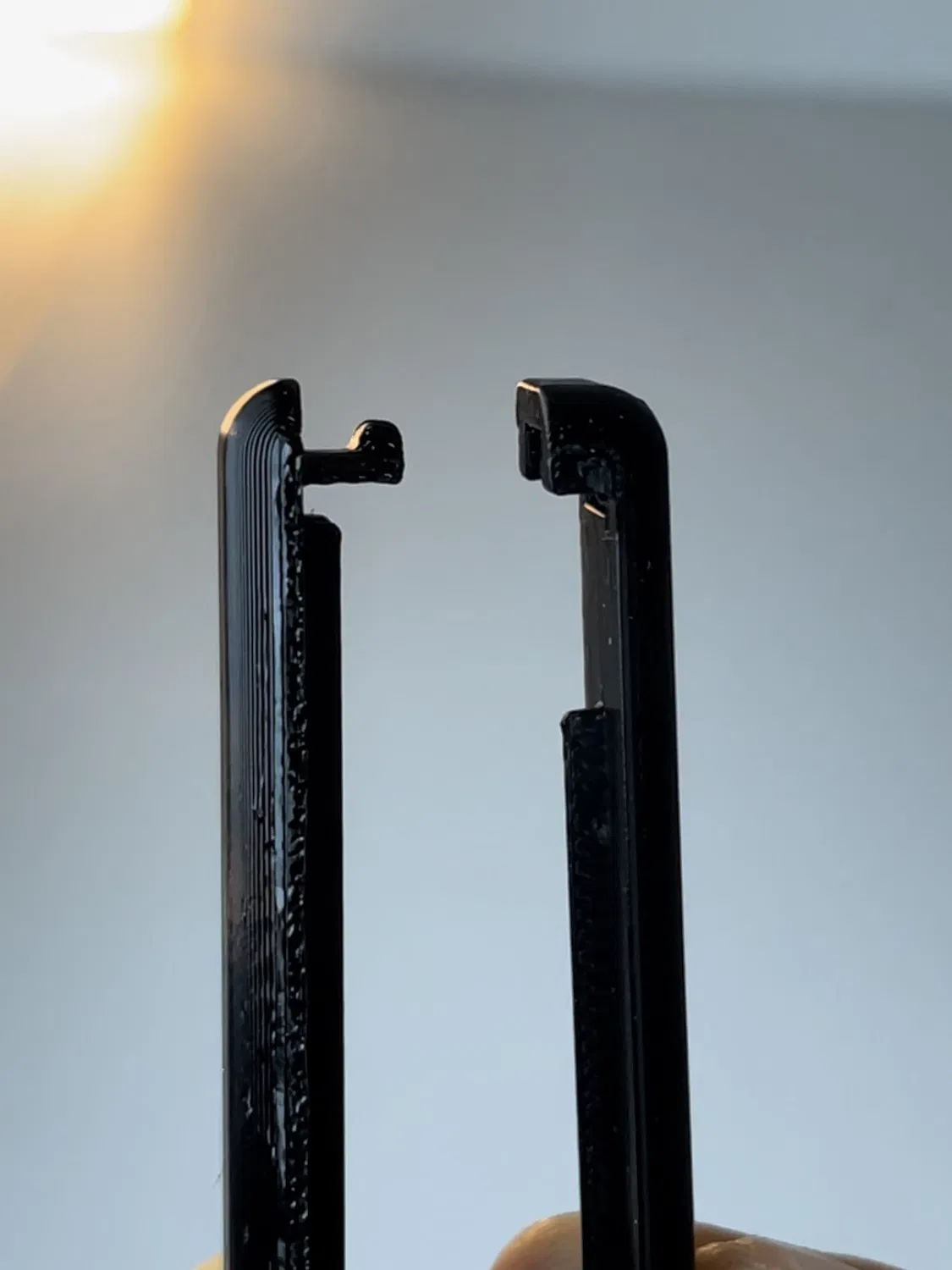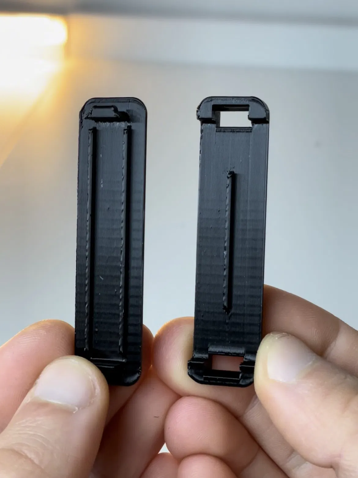 Cả hai mảnh nên được in nằm nghiêng và cần sử dụng hỗ trợ (supports) để đảm bảo độ cứng cáp và chính xác về kích thước. Nên dùng nhựa PETG hoặc ABS để chịu nhiệt tốt và bền bỉ hơn, đặc biệt khi để trong xe hơi dưới thời tiết nóng.