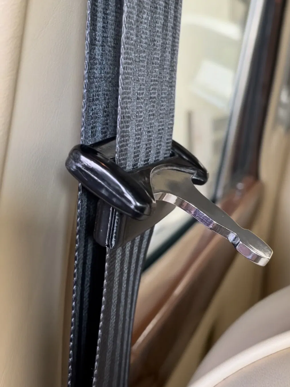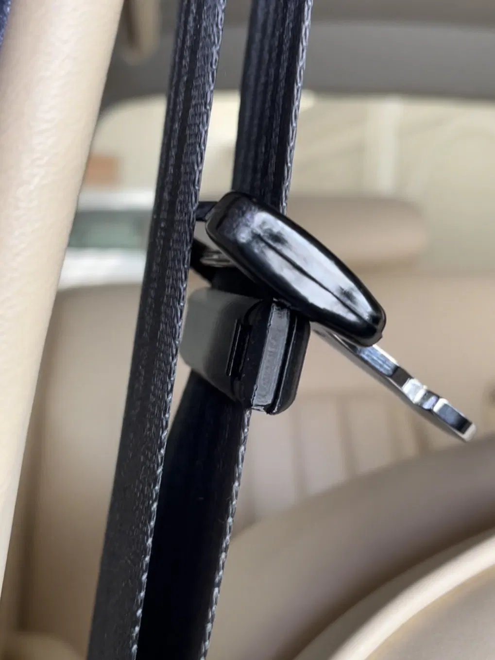 Cái kẹp dây an toàn này được thiết kế để giữ cho khóa dây an toàn của bạn không bị trượt xuống, giúp cố định vị trí để bạn dễ dàng sử dụng hơn. Kẹp gồm hai mảnh khớp vào nhau, kẹp chặt phần dây an toàn ở giữa. Khi đã khóa lại, hai mảnh này rất chắc chắn và khó bị tách rời, đảm bảo giữ vị trí bền lâu.