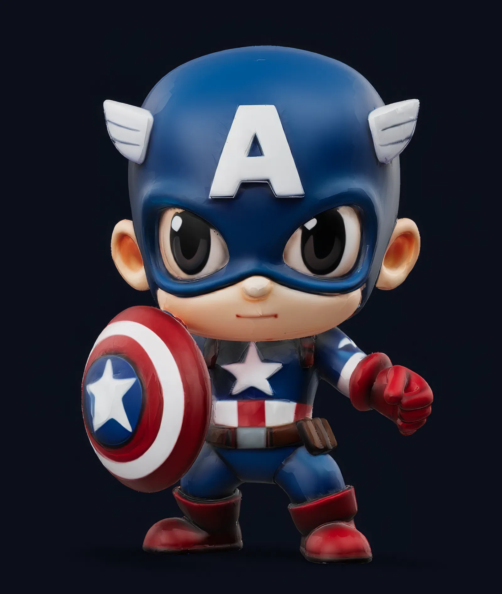 Mang biểu tượng siêu anh hùng vào đời thực với mô hình 3D Captain America phong cách chibi cực đáng yêu! Nhân vật giữ trọn vẻ ngoài đặc trưng cùng chiếc khiên huyền thoại, cực kỳ phù hợp cho các fan Marvel và dân sưu tầm mô hình miniature.
