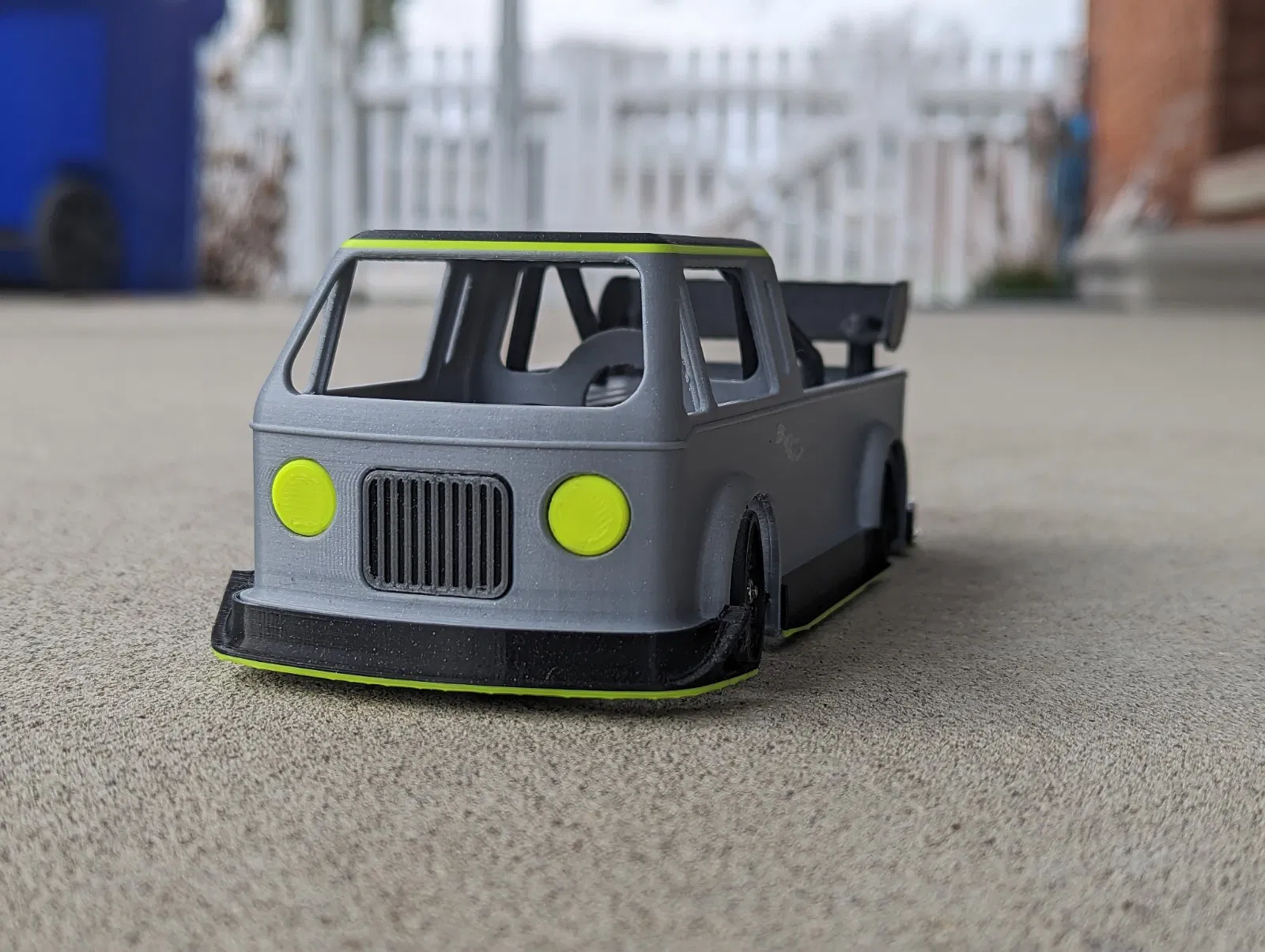 Thân xe bán tải (pick up) dành cho Mini-z. Chiều dài cơ sở 98mm, sử dụng mâm offset 0. Các phụ kiện được dùng chung với mẫu thân xe Van Bus tại: hoặc https://www.thingiverse.com/thing:5387420. Thân xe đã được cập nhật để tạo thêm không gian cho phuộc sau. Đã thêm khuôn cho cửa sổ bên hông và phía sau, các phần còn lại giống với thân xe Van. Lưu ý là phần ngàm kẹp bên hông gắn vào chassis hơi cứng, bạn có thể cần gọt bớt một chút cho vừa vặn. Cập nhật 13/02/2025: Đã thêm phiên bản chiều dài cơ sở 102mm (chưa qua kiểm thử). Cập nhật 16/02/2025: Đã thêm phiên bản 102mm cho mâm offset +3 (chưa kiểm thử, các phần ốp hông/ground effects sẽ không lắp vừa).
