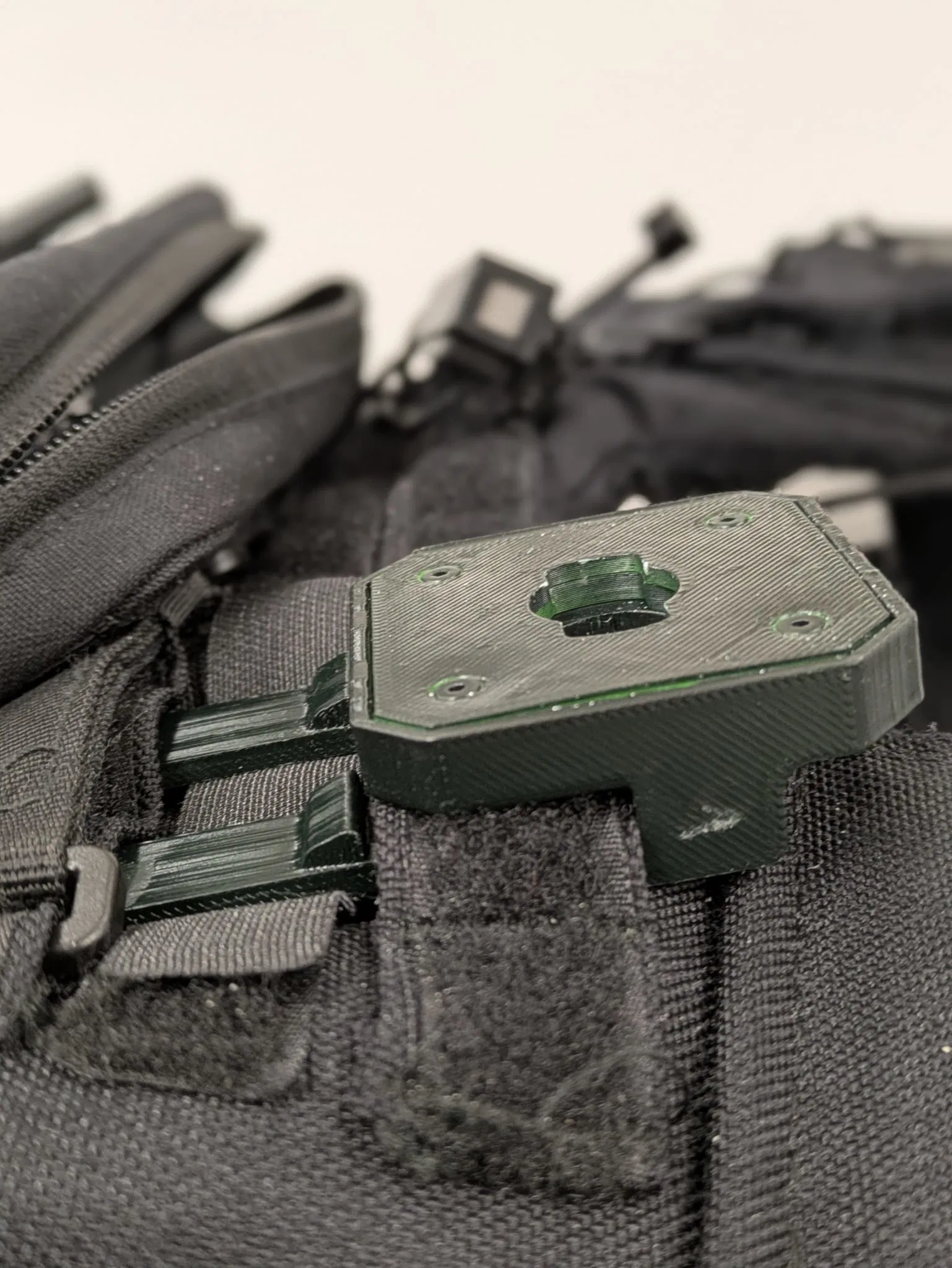- Kiểm tra kỹ: Sau khi in, hãy làm sạch các khe cắm để đảm bảo ngàm luồn qua dây đai Molle được mượt mà, không bị cấn.