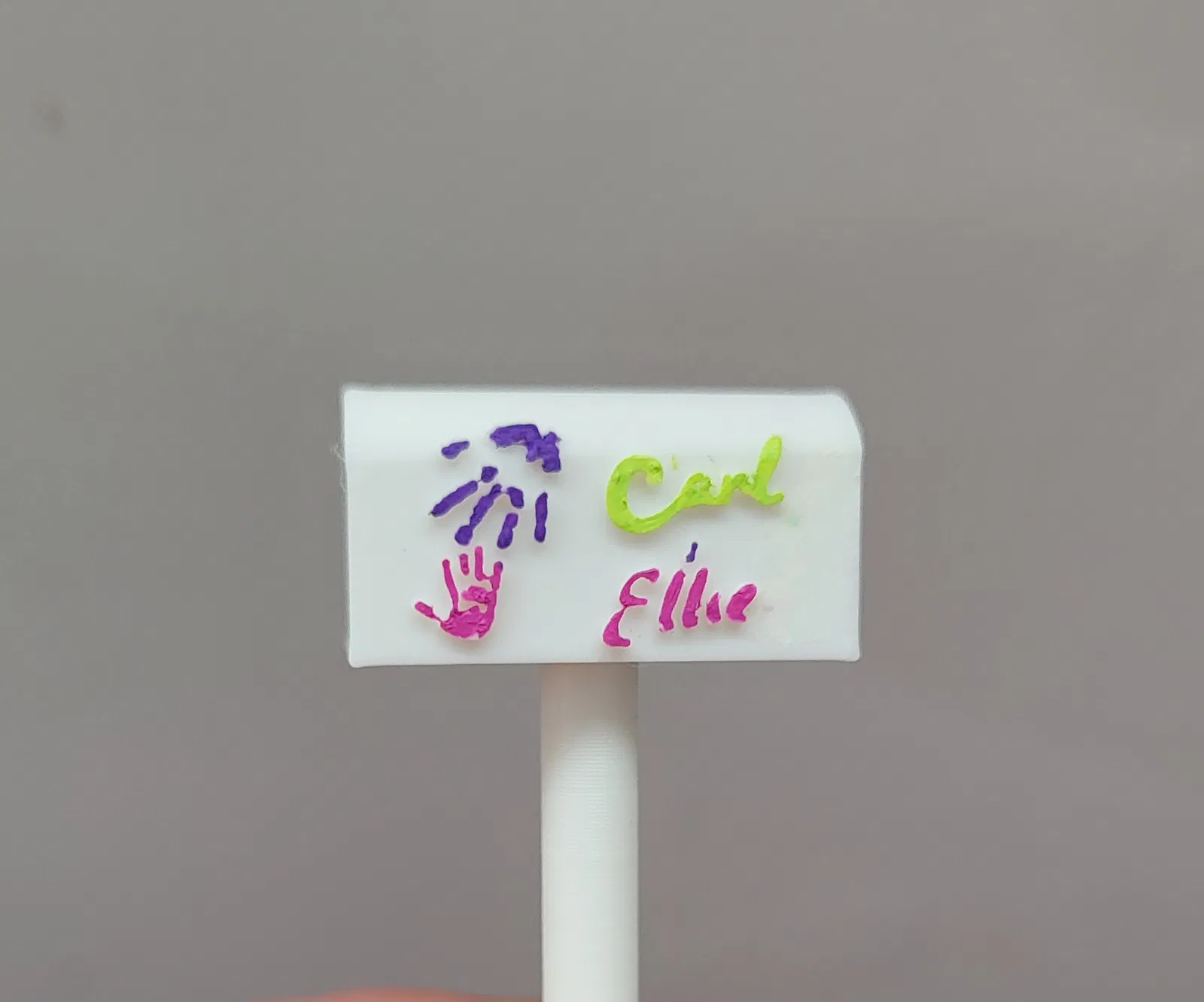 Tôi đã thêm một hộp thư khác có khắc tên của Carl và Ellie. Đối với tệp này, bạn nên in với đầu phun (nozzle) 0.2mm và chọn chế độ "detect thin walls". Sau đó, hãy dùng bút acrylic chấm nhẹ lên các tên và dấu bàn tay được làm nổi để tô màu cho chính xác nhé.