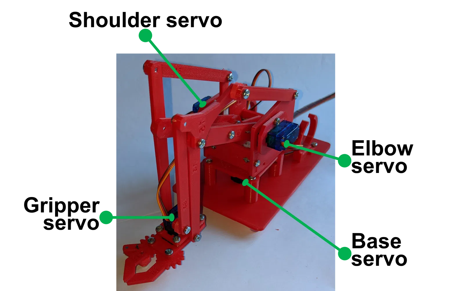 Đây là bộ các linh kiện in 3D để ráp thành một cánh tay robot, có thể điều khiển và vận hành bởi bất kỳ dòng máy tính đơn bo (SBC) Raspberry Pi nào.