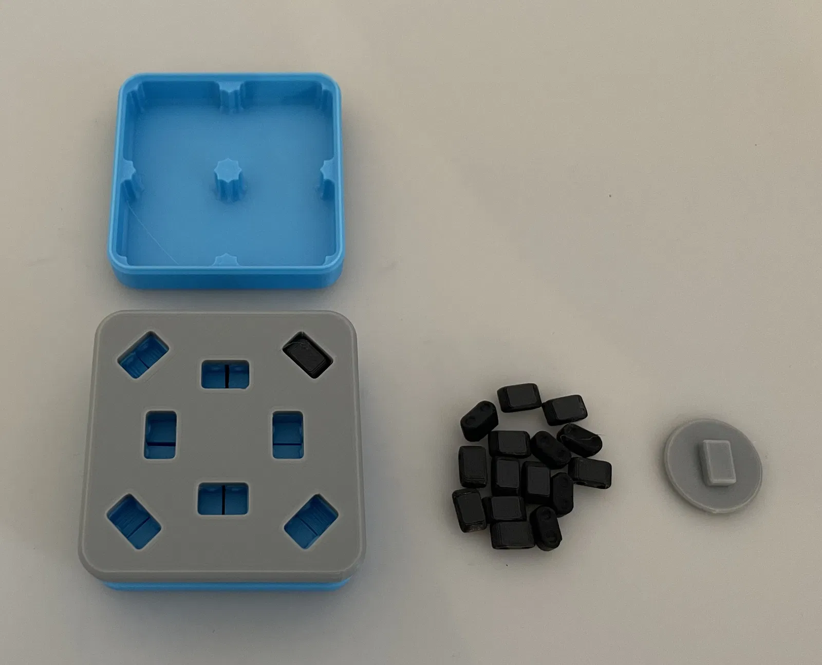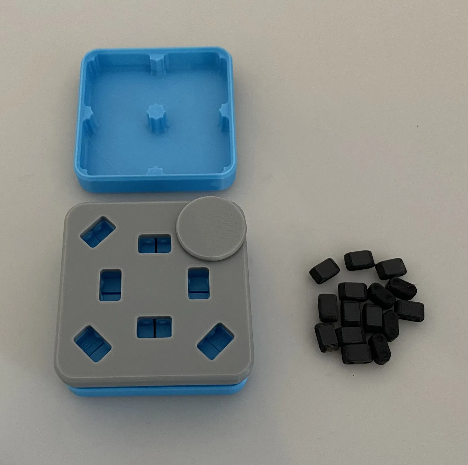 - Đặt các bộ phận của fidget vào hộp lưu trữ, đảm bảo các phần trên được căn chỉnh chính xác