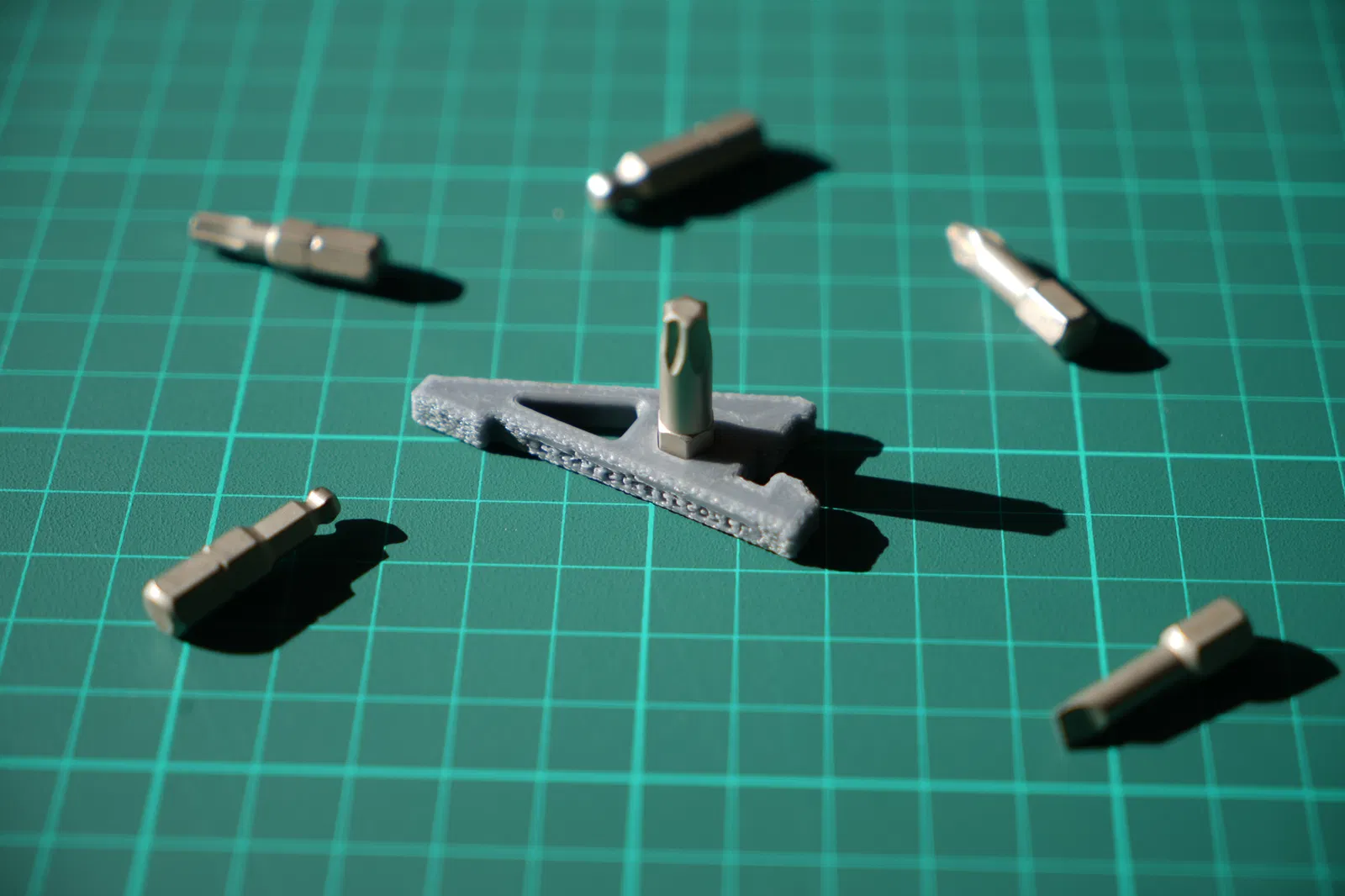 Ngoài ra, mình có tích hợp thêm lỗ cắm đầu vít lục giác 1/4" trên một trong các mẫu đế. Bạn có thể dùng để vặn ốc vít khi cần thiết. Nhưng đừng dùng lực quá mạnh nhé, vì dù sao nó cũng chỉ là đồ nhựa thôi :)