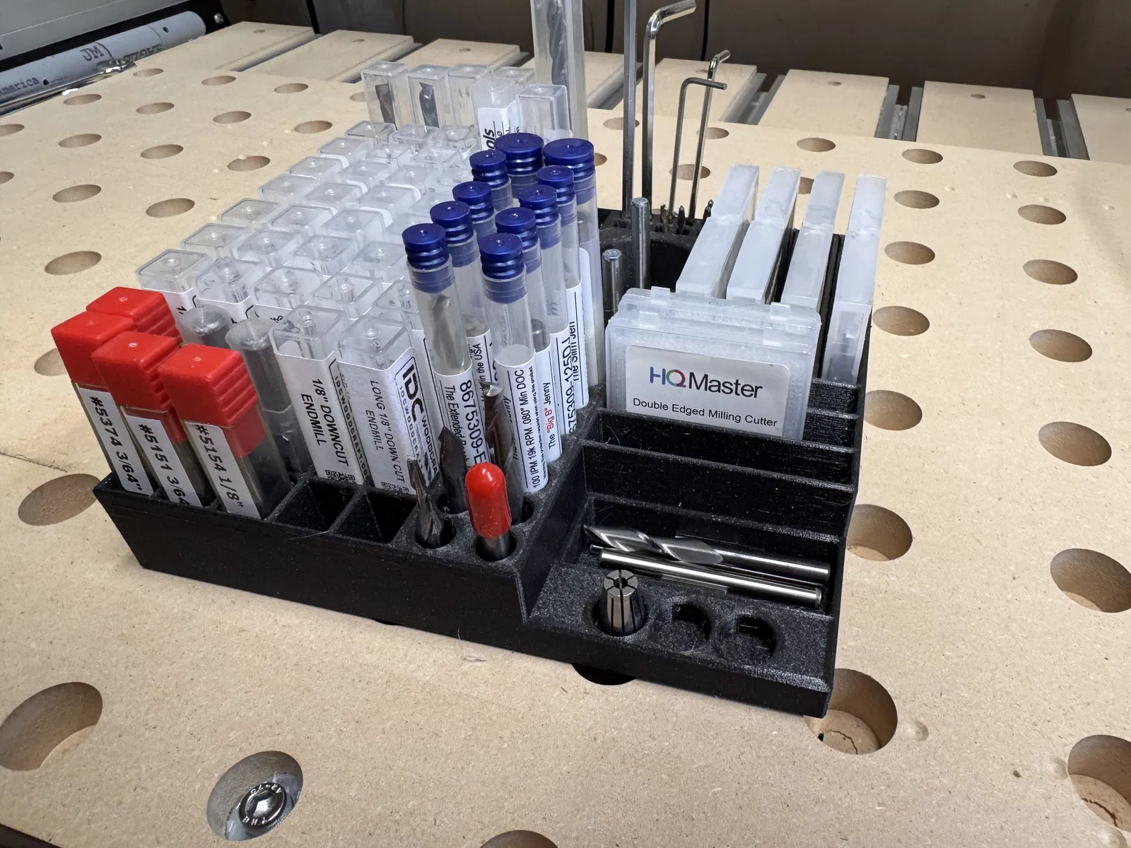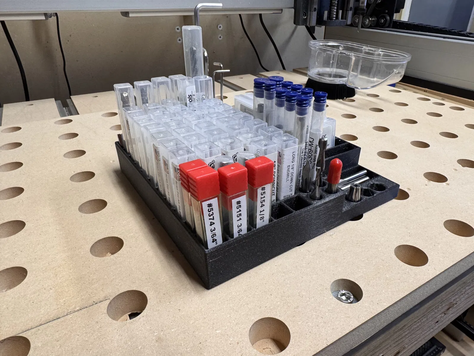 Đây là mẫu giá đỡ/bộ sắp xếp mũi CNC dành cho các dòng mũi Jenny/IDC Woodcraft, mũi phay phẳng 1-1.5in, hộp đựng mũi 1/8in và các đầu kẹp (collets). Bạn nên in bằng nhựa PLA hoặc PETG để có kết quả tốt nhất.