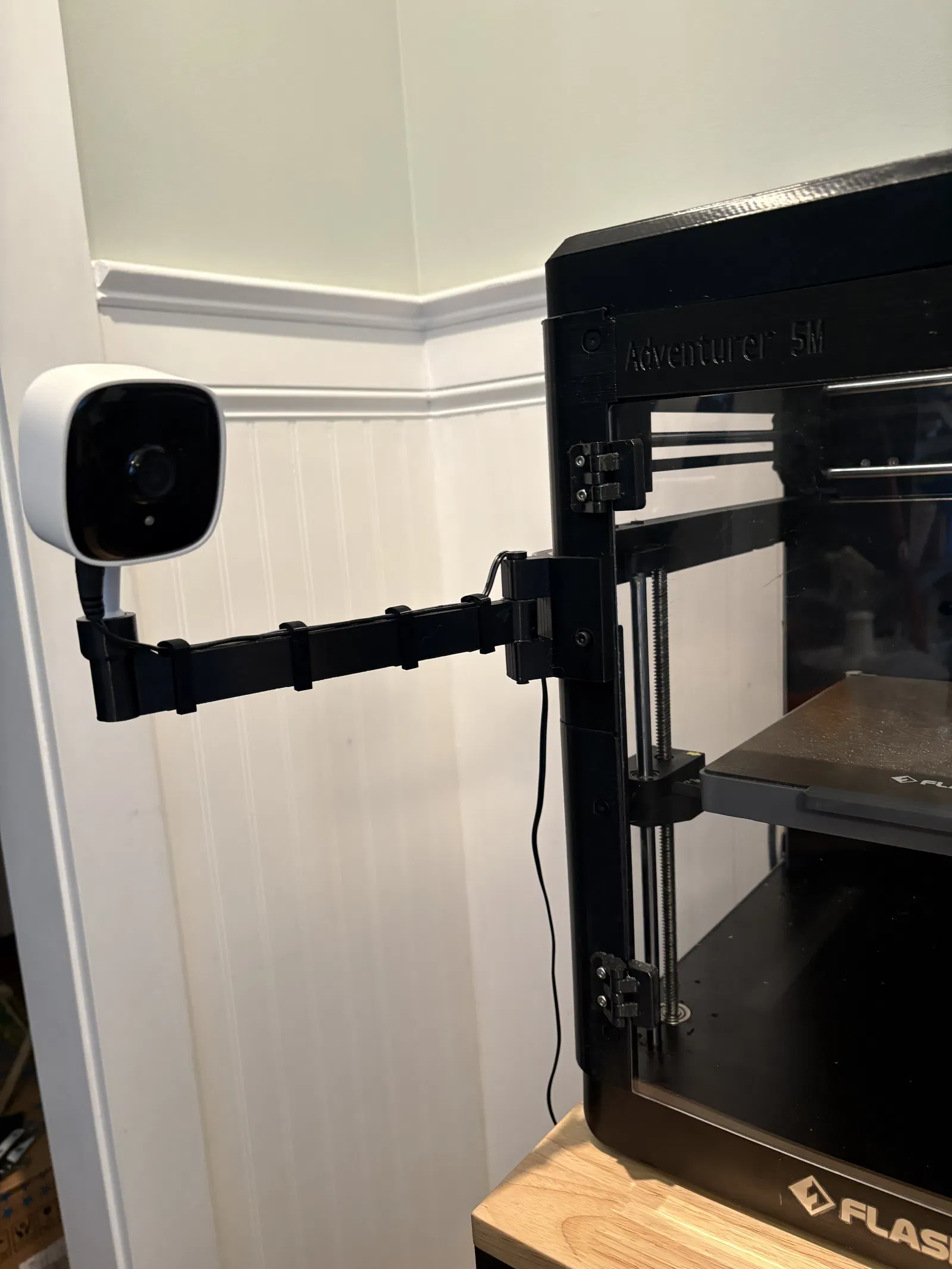 Mình cực kỳ không ưng ý với cái camera tích hợp sẵn trên Flashforge 5M nên đã tậu luôn một em Tapo… nhưng lại cần một cái ngàm gắn vào cửa trước để có thể xoay ra xoay vào cho tiện. Bộ này bao gồm một ngàm gắn bên hông, một tay đòn, các kẹp giữ dây cáp và một chốt cố định để giúp bạn linh hoạt điều chỉnh vị trí camera. Bạn hãy dùng miếng chêm 1mm để đạt được độ khít hoàn hảo nhất nhé.