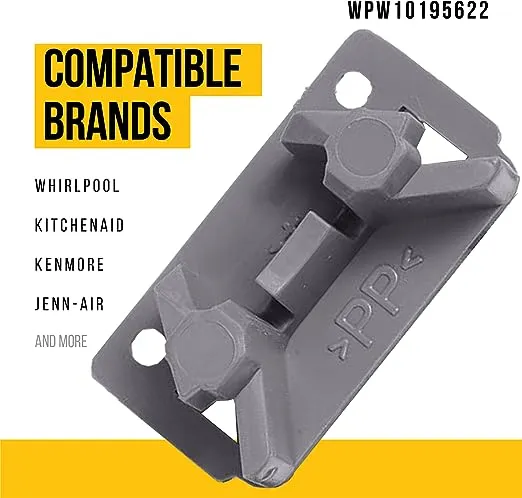 Phần thay thế cho điều này: https://www.amazon.com/wpw10195622-dishwasher-dishrack-stop-clip/r