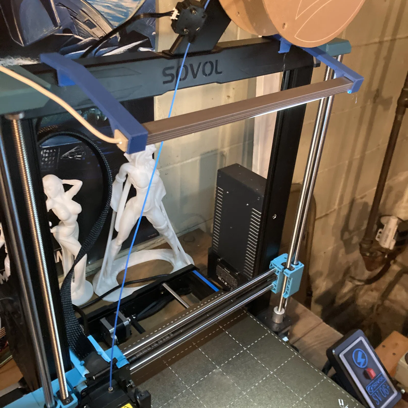 Bản Remix của giá đỡ đèn cho máy in Sovol SV06 Plus, được thiết kế để tương thích với các loại đèn có kích thước 15mm x 11mm. Bao gồm 2 phiên bản V1 và V2 với cơ chế kẹp thanh ray khác nhau để bạn lựa chọn độ chắc chắn.