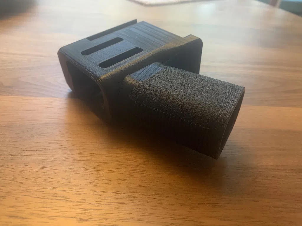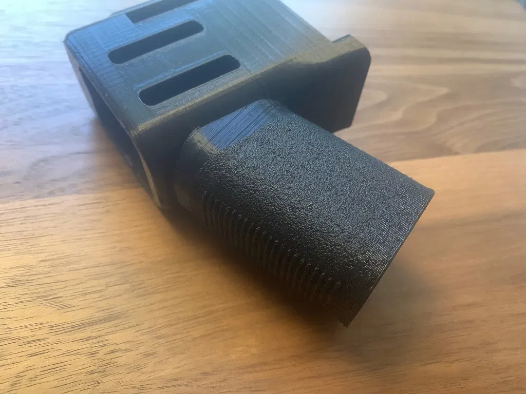 Đây là mẫu tay nắm dọc (vertical angled foregrip) được thiết kế theo phong cách MLOK BCM Mod 3. Sắp tới sẽ có thêm nhiều phiên bản khác nhau. Phiên bản hiện tại có góc nghiêng trùng khớp với phần giếng đạn (magwell) của FGC-9 và lắp vừa khít quanh phần cố định nòng súng. Anh em có thể dùng tính năng 'fuzzy skin' cho phần 1cm bên dưới đỉnh tay nắm để cầm chắc tay hơn.