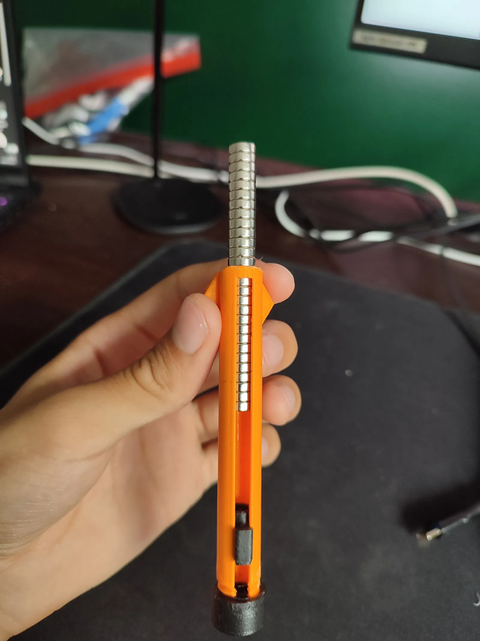 Thiết bị này giúp bạn lưu trữ và lấy nam châm một cách dễ dàng, nhanh chóng mà không làm rơi vãi hay thất lạc. Với cấu trúc dạng ống tiện lợi, bạn chỉ cần nạp đầy nam châm vào bên trong và đẩy nhẹ để lấy từng viên một khi cần sử dụng. Thiết kế này đặc biệt hữu ích cho những dự án cần số lượng lớn nam châm, giúp việc lắp ráp trở nên suôn sẻ và tiết kiệm thời gian đáng kể.