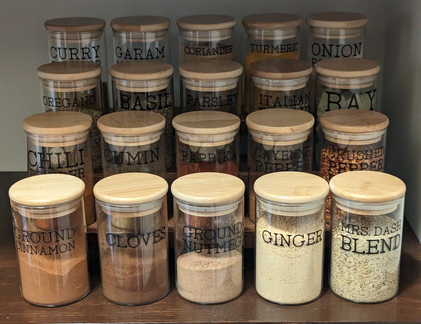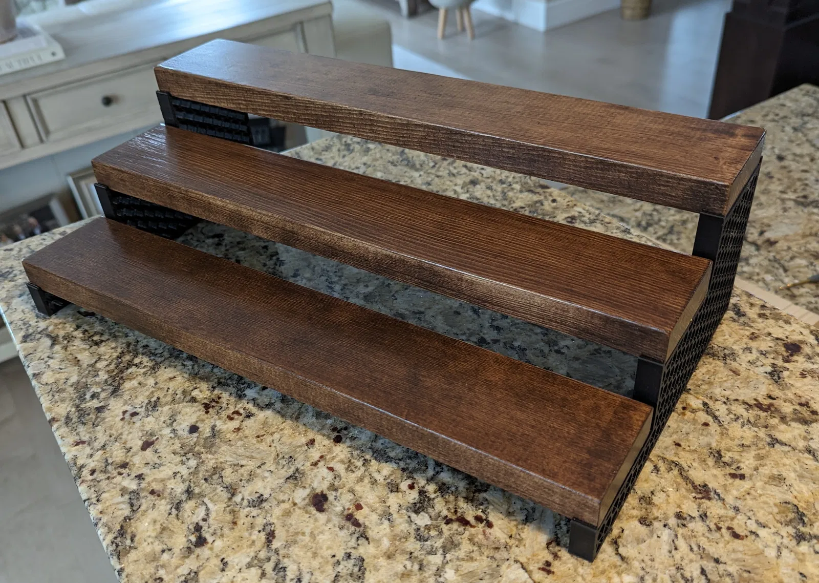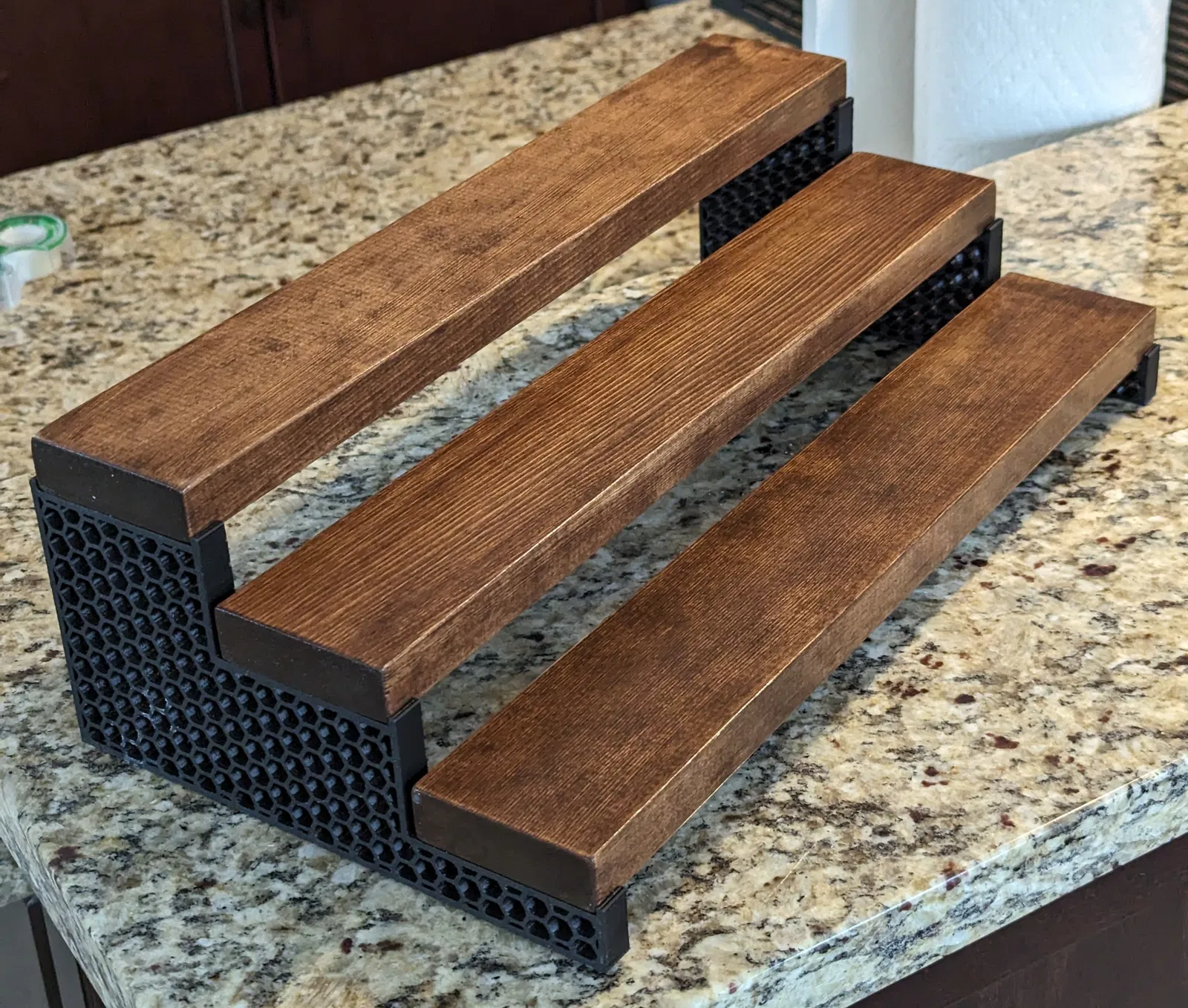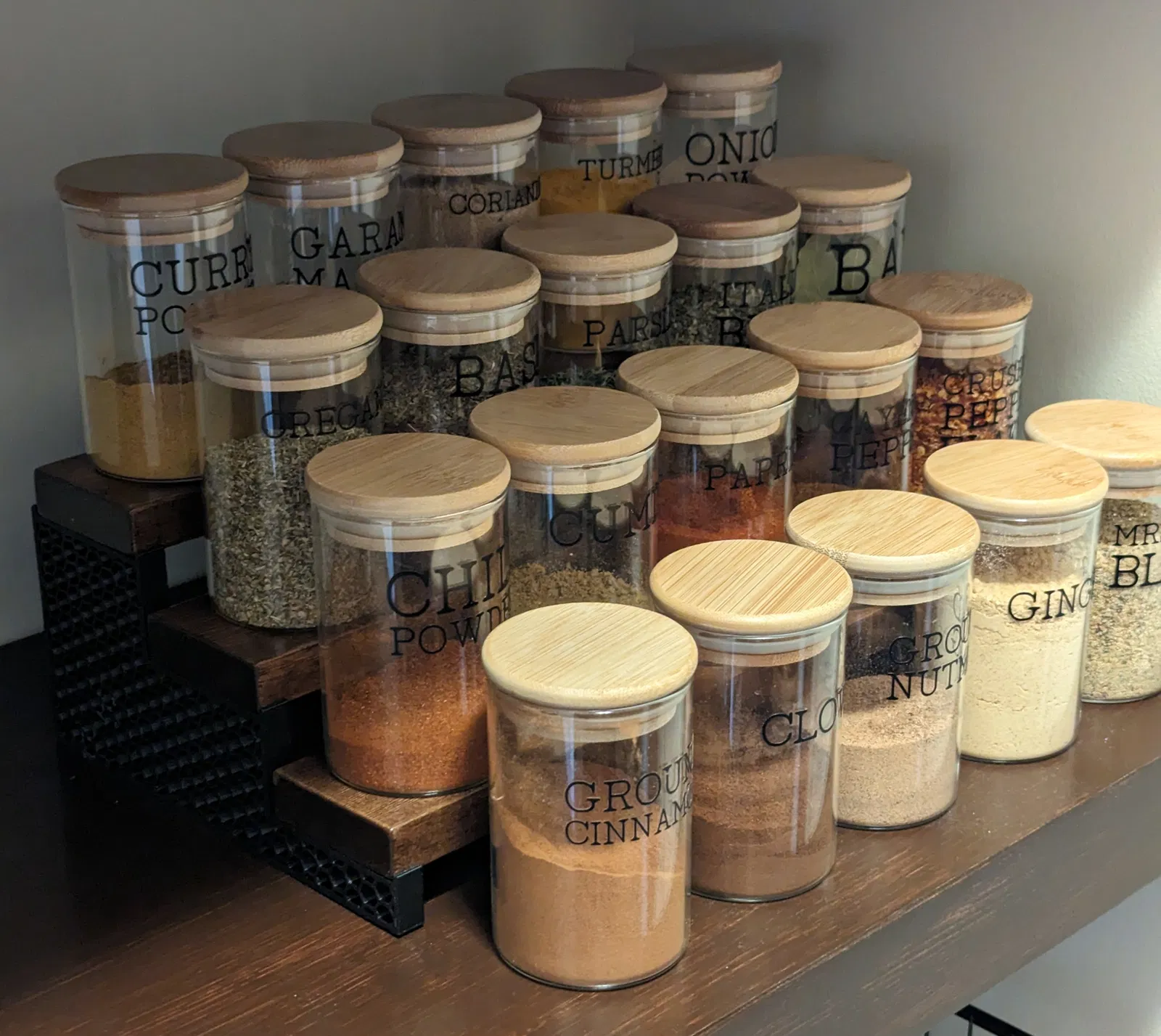 Giải pháp lưu trữ vừa thời trang vừa tiện dụng dành cho các hũ gia vị của bạn. Thiết kế này kết hợp giữa gỗ tự nhiên và nhựa in 3D, mang lại vẻ ngoài tinh tế cho căn bếp, dễ dàng lắp ráp và không cần hỗ trợ khi in.