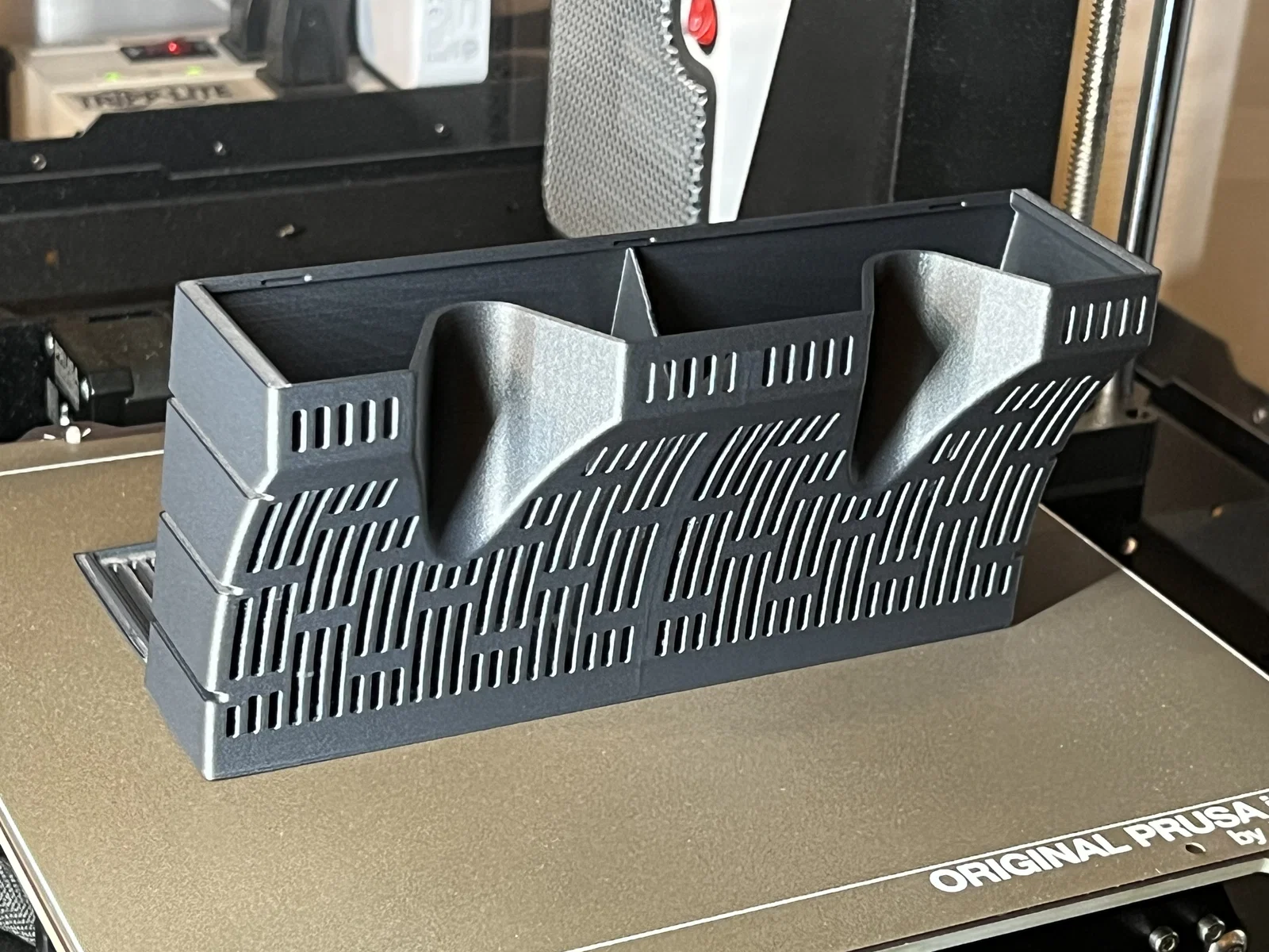 Hộp đựng hạt hút ẩm này được thiết kế vừa vặn bên trong máy sấy sợi nhựa Creality Space Pi Plus (loại hai cuộn). Nó phù hợp cho các loại hạt silica kích thước tiêu chuẩn từ 3-5mm, nhưng bạn cũng có thể dùng các túi hút ẩm nhỏ. Nếu bạn đang tìm phiên bản cho máy sấy Creality Space Pi loại một cuộn, hãy xem qua mẫu khác của mình (). ### Đặc điểm thiết kế: Không cần hỗ trợ (support) In nhanh chóng Dễ dàng thao tác với các cổng sợi nhựa phía trên (rất tiện cho những ai có ngón tay to). Nắp đậy dạng khớp nối, có khe ở cạnh sau giúp bạn mở nắp dễ dàng hơn. ### Linh kiện cần thiết: Hạt hút ẩm Silica. Mình đã dùng loại này: https://www.amazon.com/dp/B0784W1R77 ### Lưu ý khi in: In với chiều cao lớp (layer height) 0.2mm, 2 perimeter, 15% infill. Không cần support cho bất kỳ chi tiết nào. Hãy chọn vật liệu chịu nhiệt tốt như ABS hoặc PC (mình dùng PC-CF). PLA sẽ không chịu nổi nhiệt độ bên trong máy sấy. PETG có thể dùng được nếu bạn chỉ sấy sợi nhựa PLA. Nắp được thiết kế để lắp vào rất khít. Nếu bạn gặp khó khăn trong việc giữ dung sai (tolerance), hãy thử giảm tốc độ in bằng cài đặt structural thay vì speed. Vui lòng KHÔNG dùng file .bgcode được cung cấp (luôn tự slice file riêng cho máy in, loại nhựa, đầu phun và môi trường của bạn). File này chỉ dùng cấu hình tùy chỉnh và được đính kèm để bạn tham khảo thời gian in dự kiến.