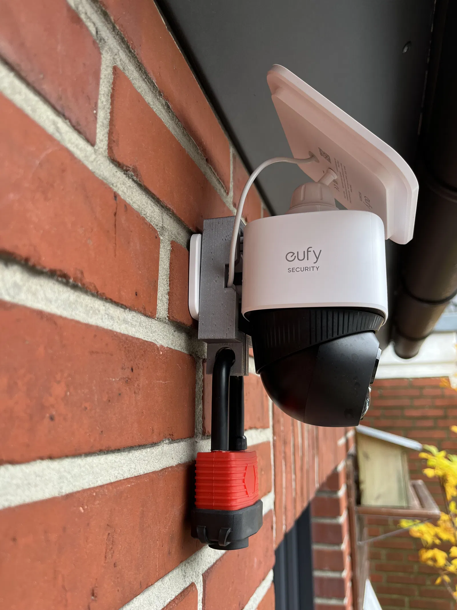 Giải pháp khung bảo vệ thiết kế riêng cho camera Eufy S340, giúp chống trộm hiệu quả khi không thể lắp đặt ở trên cao. Thiết kế in 3D tích hợp bản lề, hỗ trợ đi dây sạc năng lượng mặt trời tiện lợi mà không cần support.