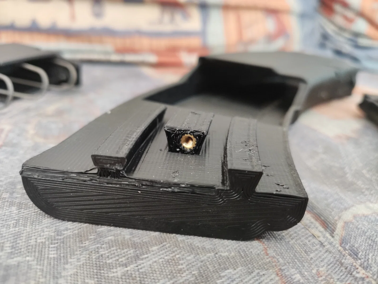 Cách lắp ráp: Sau khi in, bạn nung chảy ốc nhiệt vào vị trí, lắp lò xo và phần tiếp đạn vào, sau đó ráp băng đạn và cố định phần thân bên bằng ốc vít M3. Băng đạn này tương thích với tất cả các loại đế (baseplate) dành cho băng đạn nhựa AK.