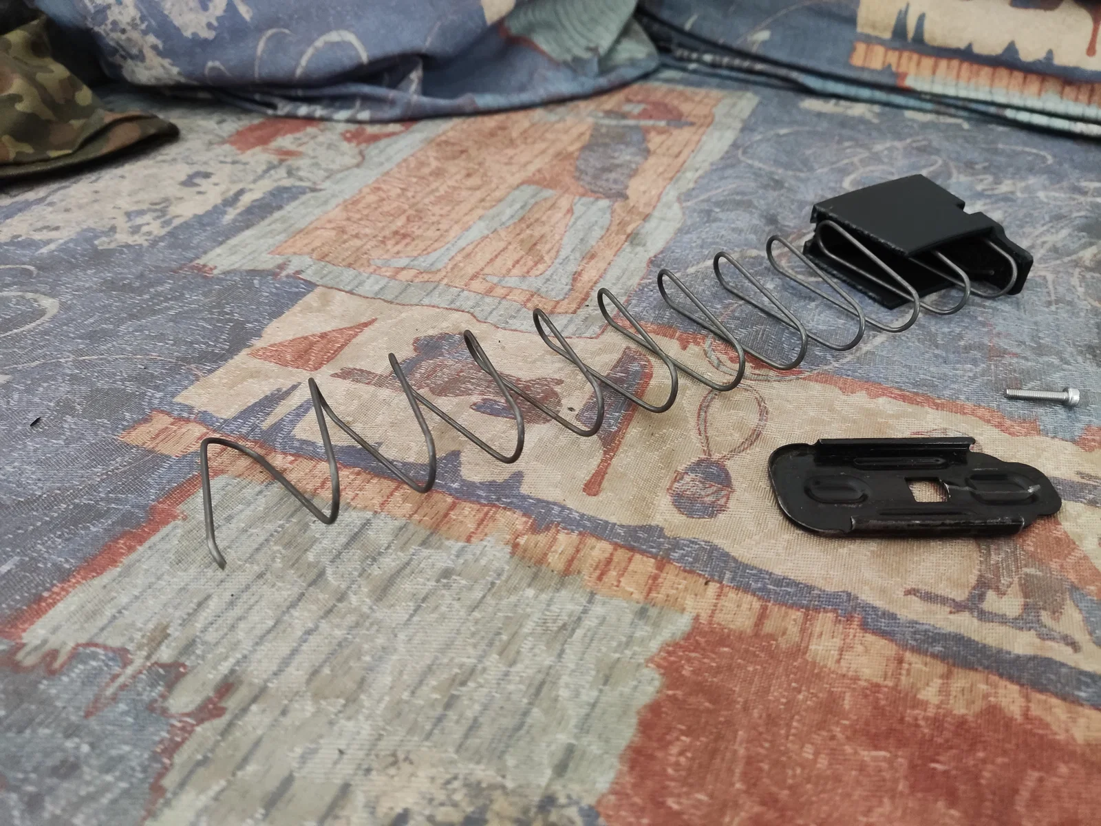 Ngoài các linh kiện in 3D, bạn chỉ cần một nửa lò xo băng đạn AK-47, cắt theo chiều dài phù hợp. Sau khi cắt, bạn có thể uốn phần đuôi lò xo để cố định dễ dàng hơn. Ngoài ra, bạn cần thêm một ốc nhiệt (heatset insert) M3 và một ốc vít M3 có chiều dài ren ít nhất 18mm.