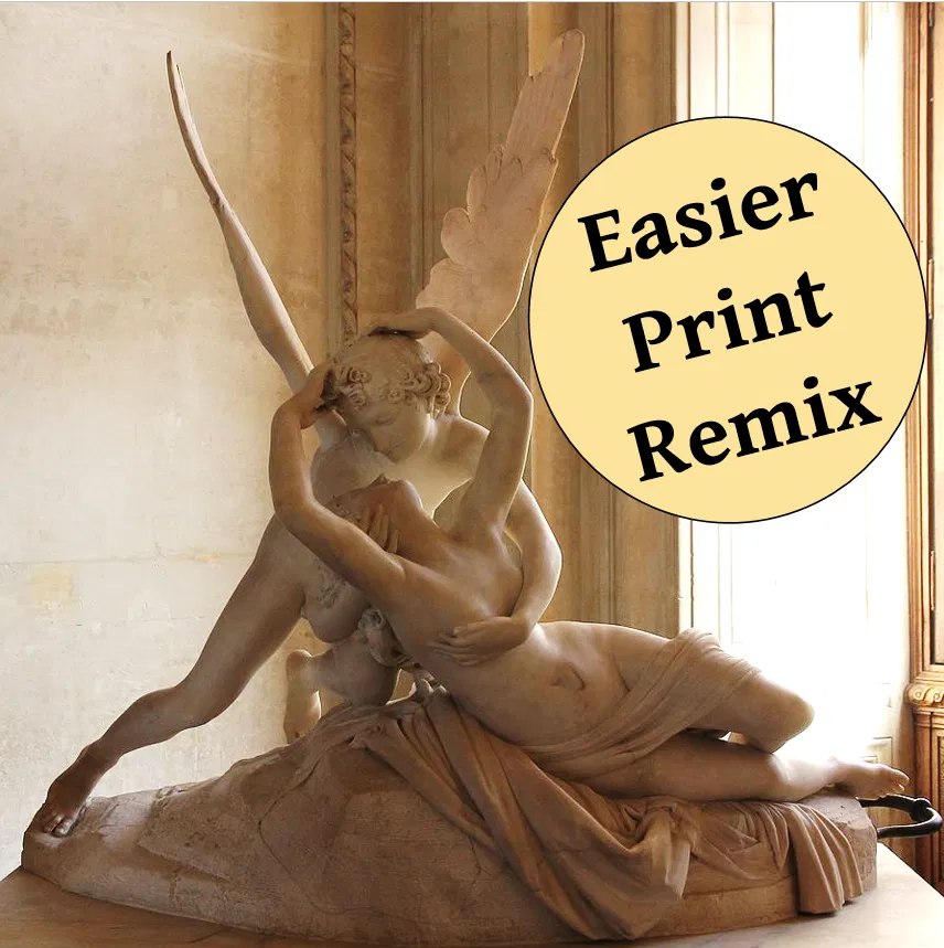 Bản remix của bức tượng Amor & Psyche kinh điển từ Canova, đã được tinh chỉnh để in 3D dễ dàng và ổn định hơn bằng cách lược bỏ các chi tiết thừa và dễ gãy.