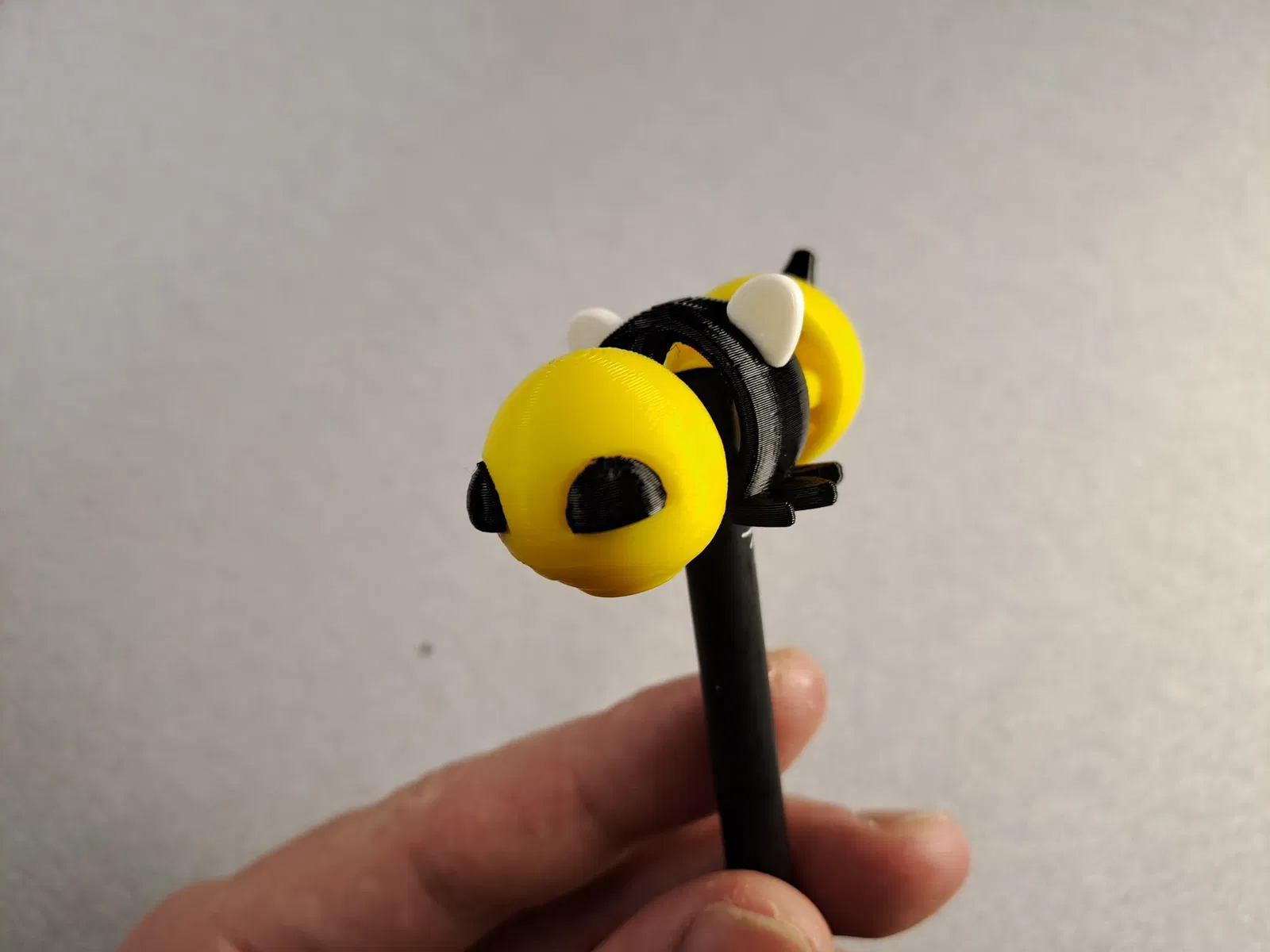 Thiết kế có sẵn lỗ để nhét nam châm tròn 6x2, ngoài ra còn có một lỗ khác giúp bạn gắn chú ong lên bút chì. Nếu bạn chỉnh phần đầu và đuôi vào giữa, chiếc bút chì cắm vào thậm chí còn giúp chú ong không bị rung lắc.