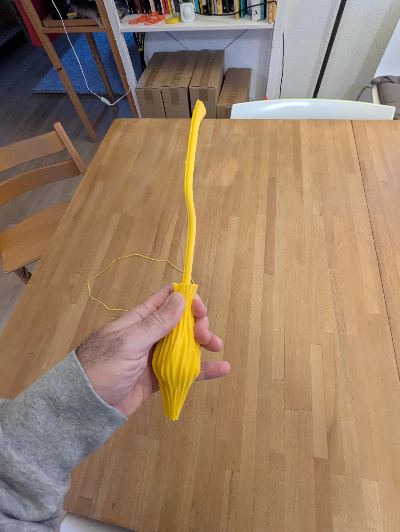 - Lưu ý về lắp ráp: Vì phần đuôi chổi có cấu trúc khá mảnh, hãy đặc biệt cẩn thận khi gắn phần cán vào phần đuôi, vì khu vực liên kết này rất dễ bị cong vênh trong quá trình in hoặc lắp đặt.