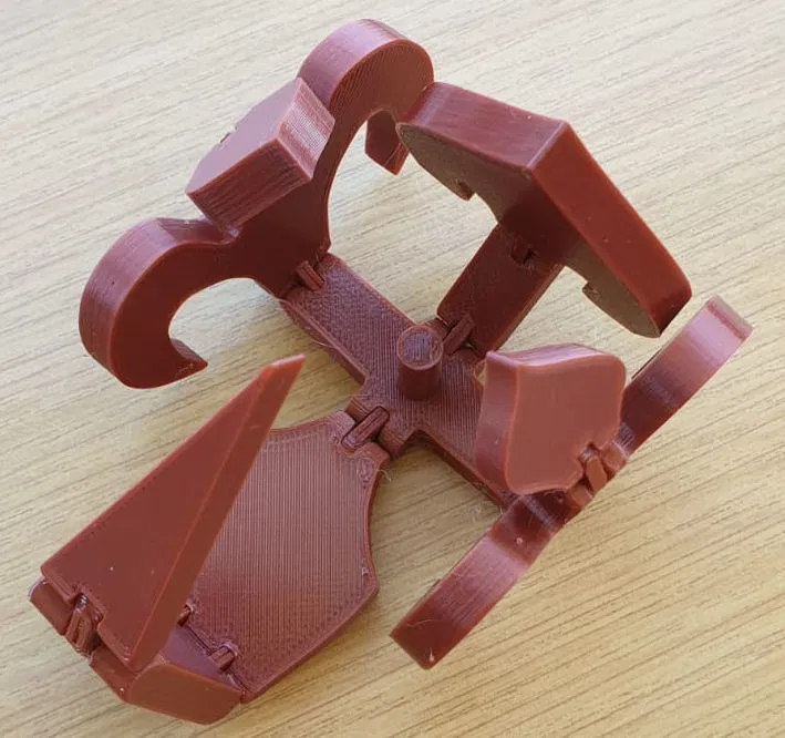 Không cần hỗ trợ (support) và các khớp nối bên trong được in liền khối (print-in-place). Sau khi in, các khớp nối có thể cần được "mở khóa" cẩn thận để tách những phần nhựa nhỏ bị dính, sau đó chúng sẽ cử động linh hoạt.